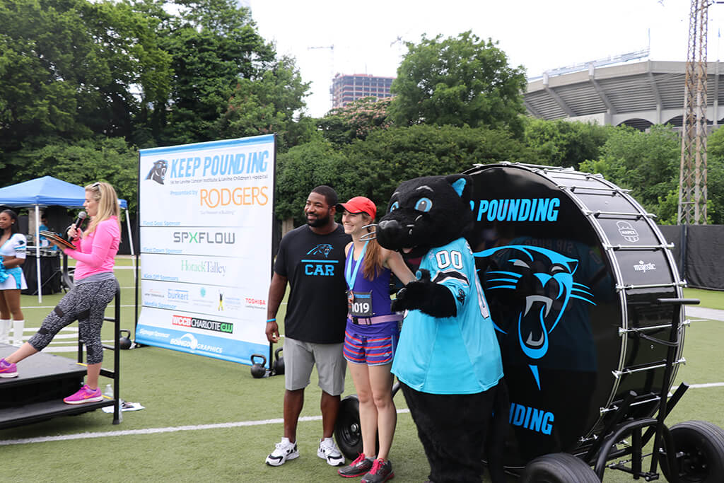 Rodgers team members joined roughly 1,000 other participants in the 2018 Keep Pounding 5K, presented by Rodgers Builders, in support of the fundraising movement to POUND OUT CANCER in the Carolinas and beyond. All net proceeds from the 5K go toward the Keep Pounding Fund. Created by the Carolina Panthers and Carolinas HealthCare Foundation in 2003, the Keep Pounding Fund supports cancer research efforts. Since 2003, the Keep Pounding Fund has raised over $2 million to help support cancer programs at Atrium Health’s Levine Cancer Institute and Levine Children’s Hospital. This year, fundraising efforts set a new record and topped $125,000!