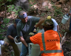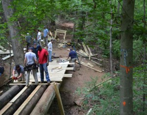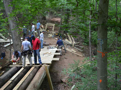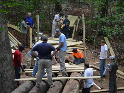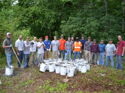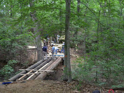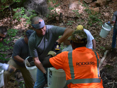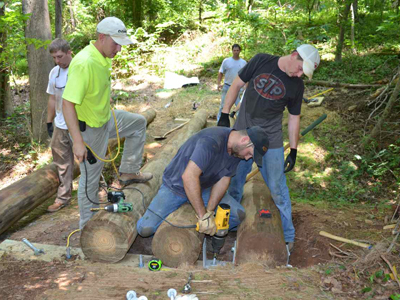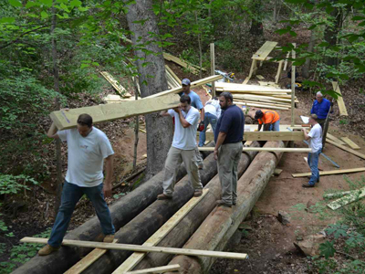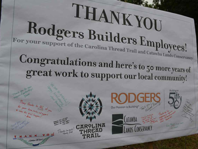 Rodgers partnered with the Catawba Lands Conservancy in a community service project to further develop the Carolina Thread Trail by building three pedestrian bridges to connect trails on the Seven Oaks property, adjacent to the Daniel Stowe Botanical Garden. About 80 Rodgers employees worked to haul materials and supplies through the rough trail terrain and construct the wood bridges.