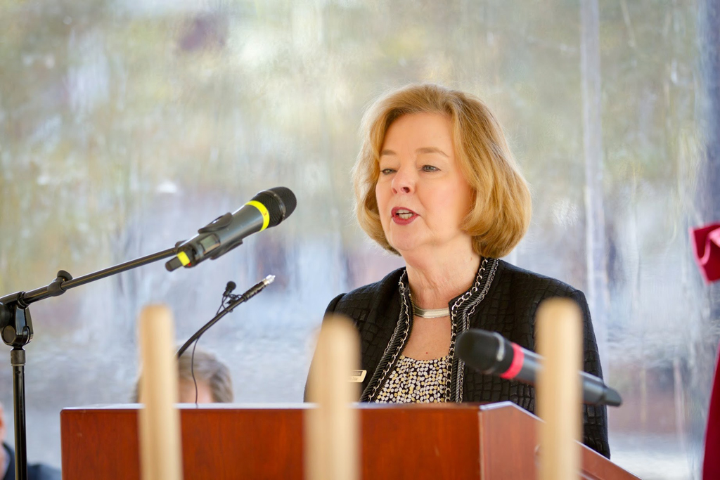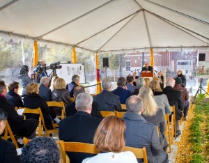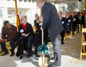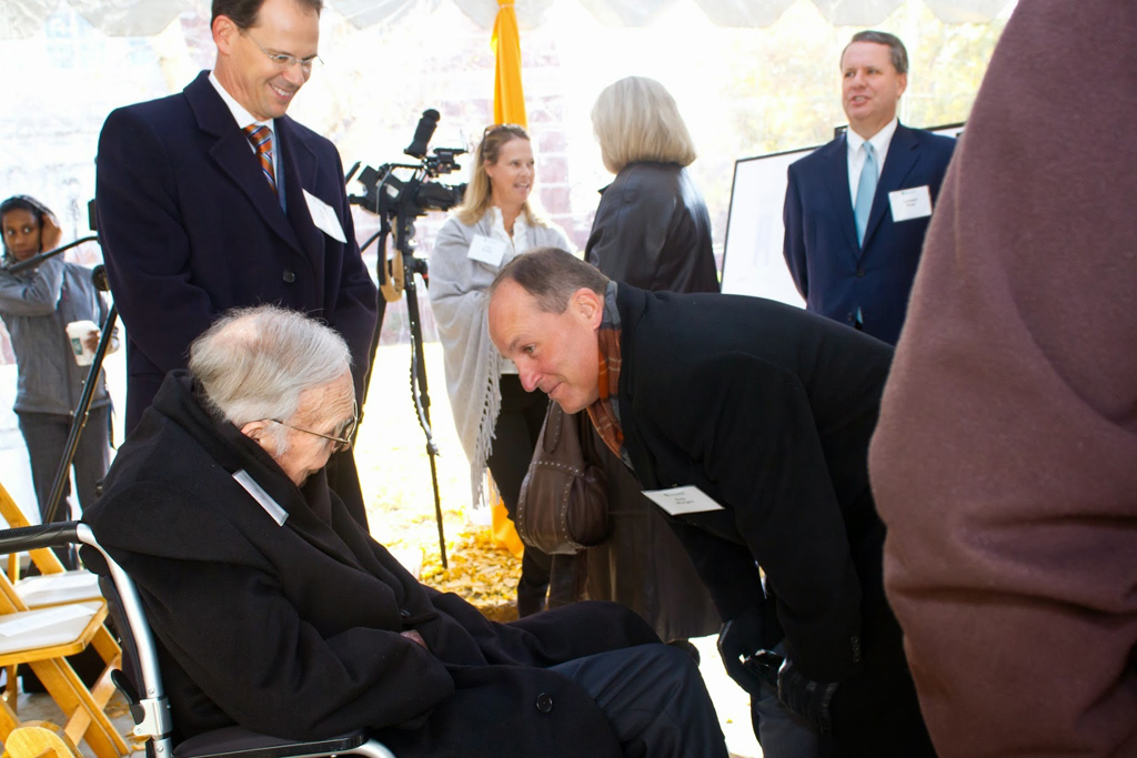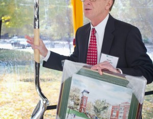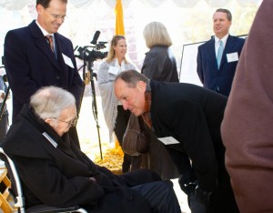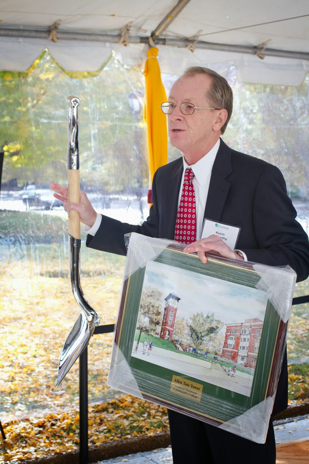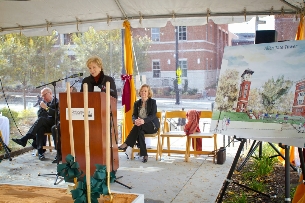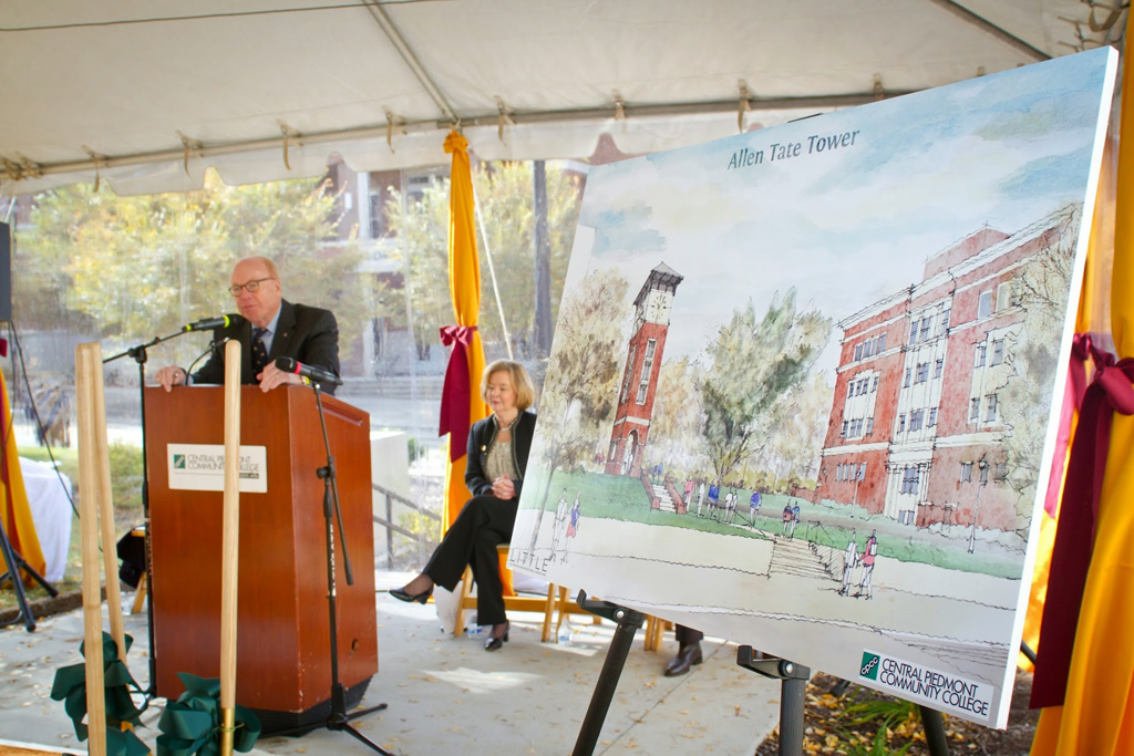 Charlotte, N.C. – In a groundbreaking ceremony Tuesday morning, Central Piedmont Community College (CPCC) honored H. Allen Tate, Jr., founder and chief executive of the Charlotte real estate firm Allen Tate Co., as the college broke ground on a 48-foot clock tower that will bear his name. The groundbreaking ceremony took place at the Central Campus of CPCC.