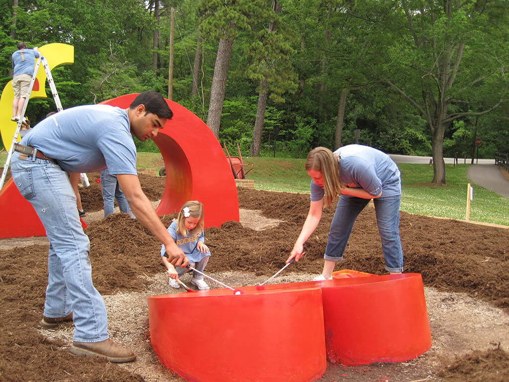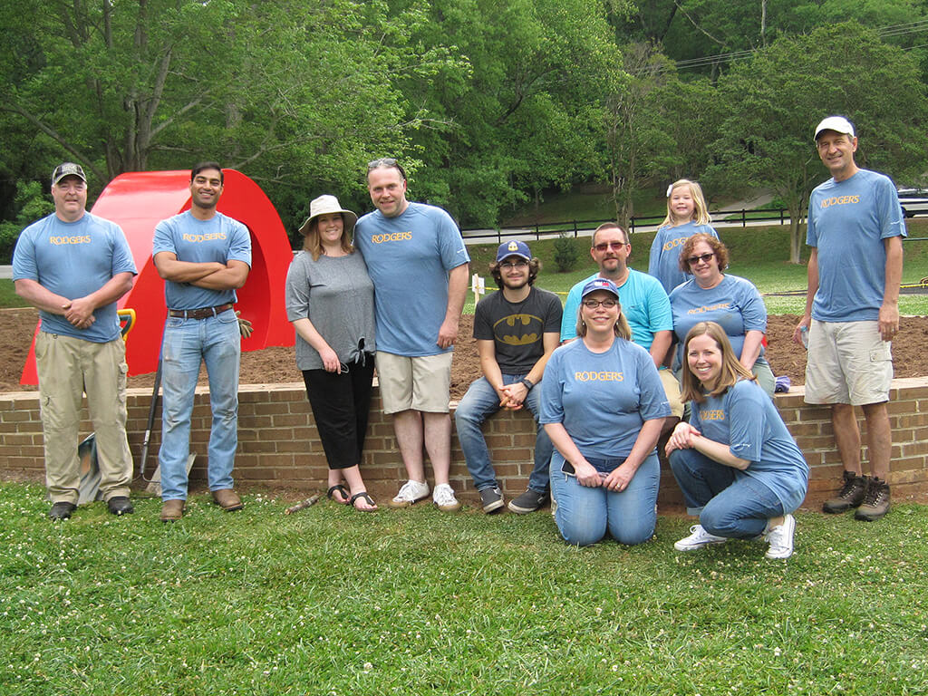 On May 5, 2018, volunteers gathered to complete approximately 150 projects across Greenville County, South Carolina. Led by United Way, Hands On Greenville Day, or HOG Day, is the largest day of service for the state of South Carolina. This year celebrated 24 years of volunteerism and Rodgers team members from the Greenville Regional Office joined the celebration by working to revitalize the Julie Valentine Center Memorial. Work consisted of spreading mulch in the garden and sanding and re-painting the memorial.
