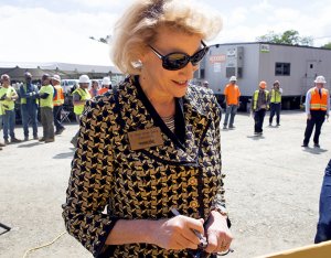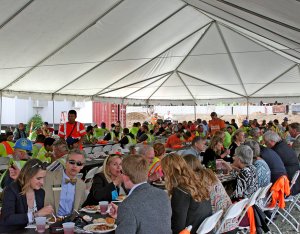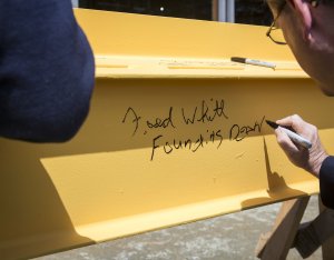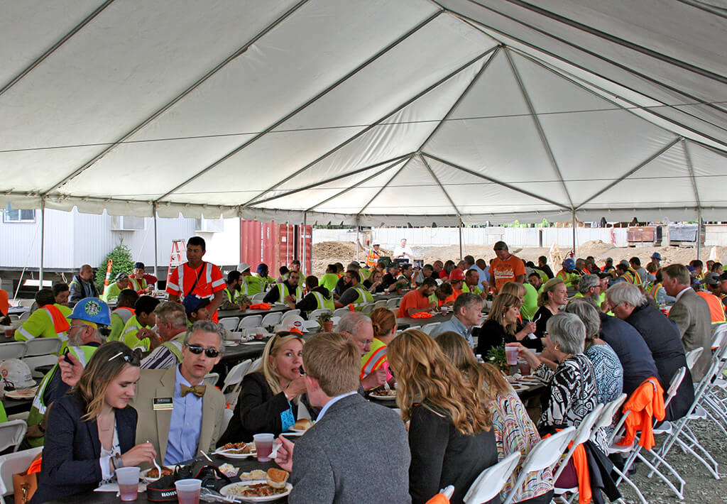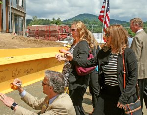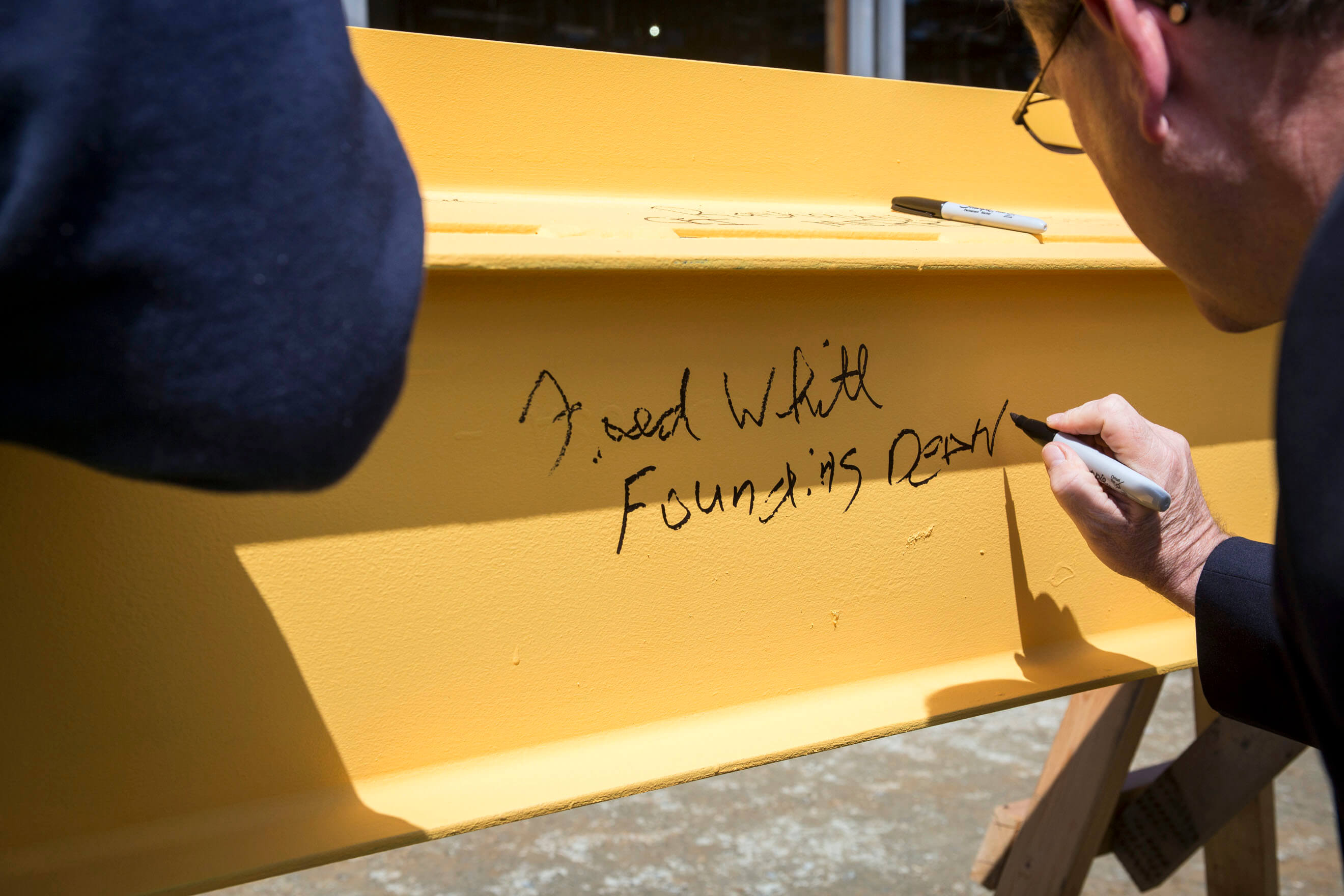 Guests were invited to sign the beam before a crane hoisted it to its final position.