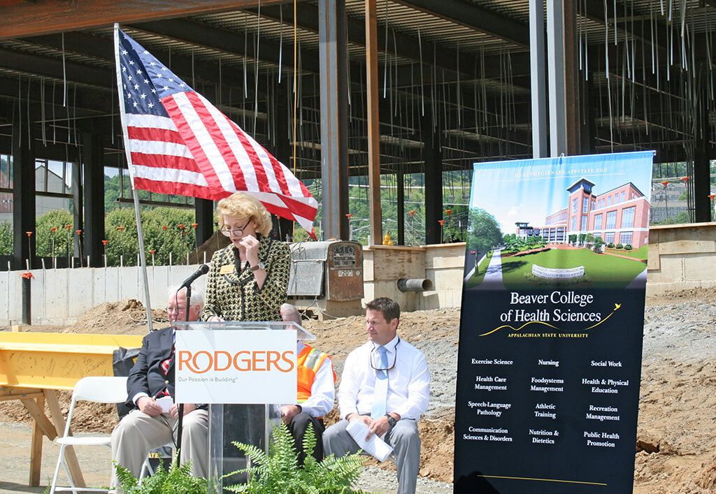 Appalachian State University website, June 13, 2017, Workers celebrated in ‘topping ceremony’ for Beaver College of Health Sciences building