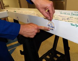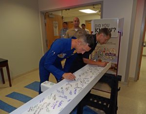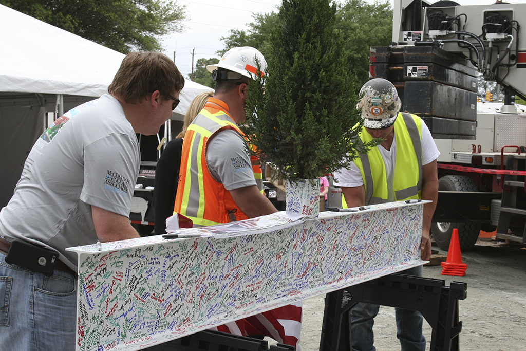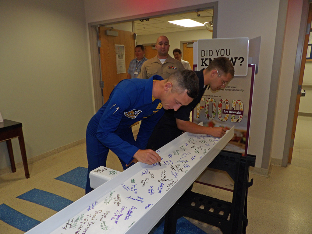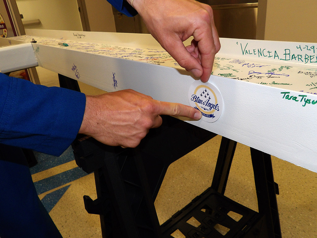 In celebration of the new tower that will benefit the surrounding region, the Flight Surgeon and Corpsman, crew members of the U.S. Navy Blue Angels, came from Naval Air Station Pensacola in Florida to join the festivities as special guests to sign the beam before it was raised into place.