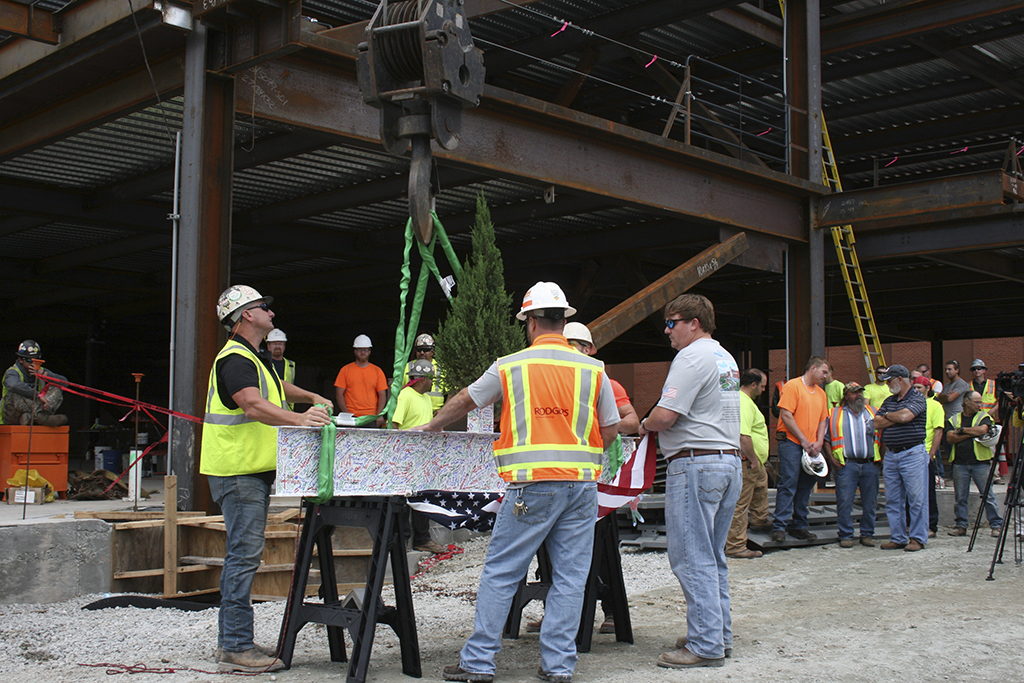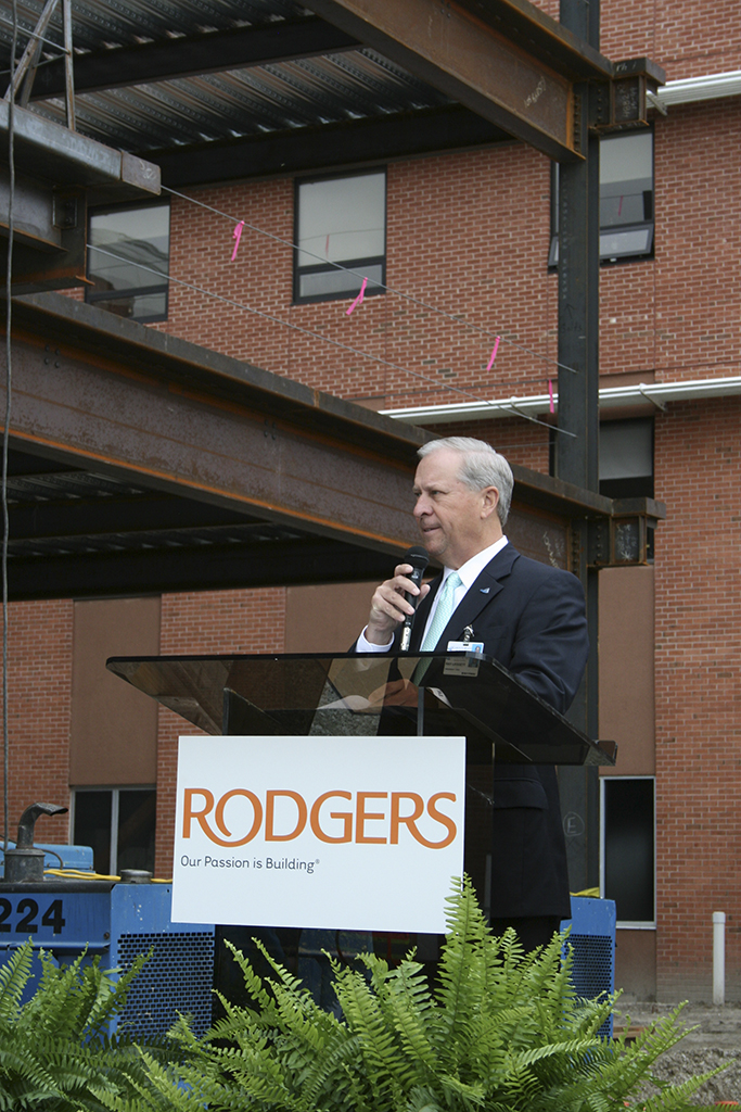 CarolinaEast Medical Center, Rodgers, community members, subcontractors and craftworkers joined together to celebrate the topping out of the new Women’s and Children’s Health Pavilion and ED expansion this afternoon in New Bern, NC. The project consists of a new three-story tower including 30,000 square feet of new construction and over 70,000 square feet of renovated space, making it the largest expansion and renovation project in CarolinaEast Medical Center’s 53-year history.