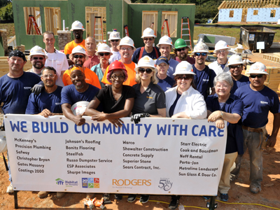 Over a period of about a week starting in late September plus some weekends, about 70 Rodgers employees built a home for Habitat for Humanity as one of our 50th anniversary community service projects. The house is a two-story, four-bedroom home and is Habitat Charlotte’s first LEED Platinum house.