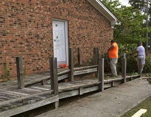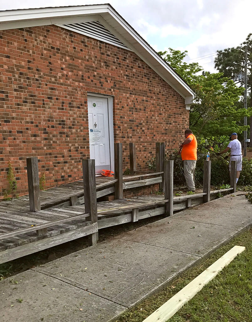 On April 29, team members from Rodgers’ Wilmington Regional Office participated in a day of service at Cape Fear HealthNet, a Work on Wilmington project site. Rodgers’ volunteers rolled up their sleeves and got to work replacing handicap ramps, cleaning up surrounding landscaping, and refreshing driveways and parking lots with new gravel.