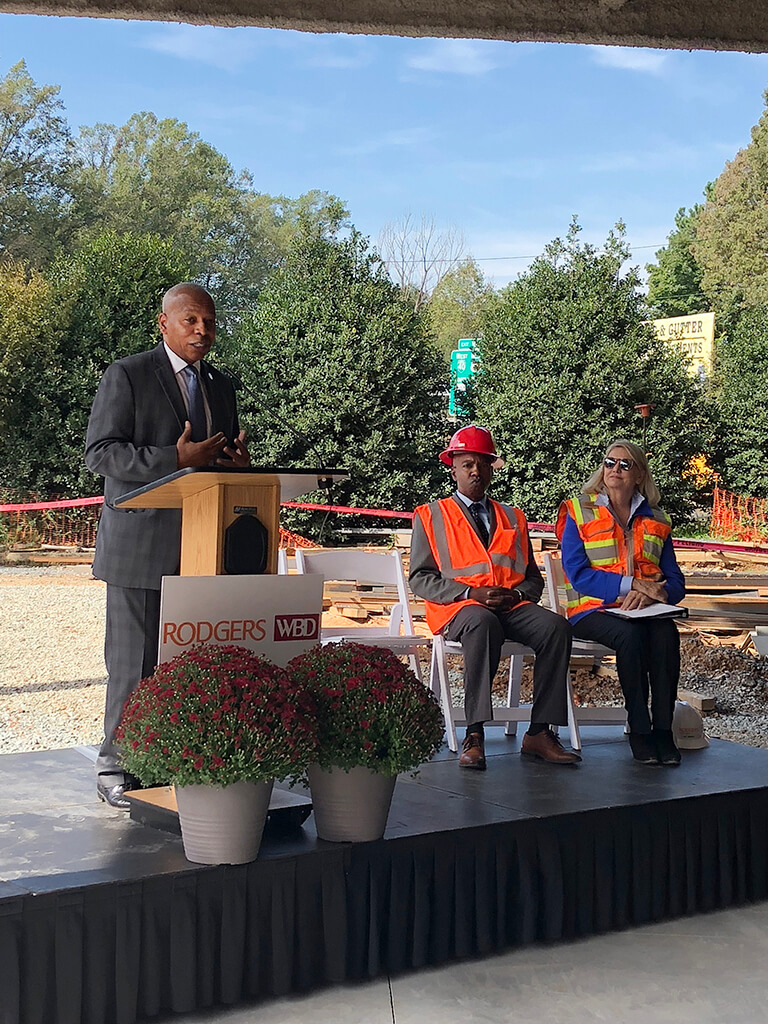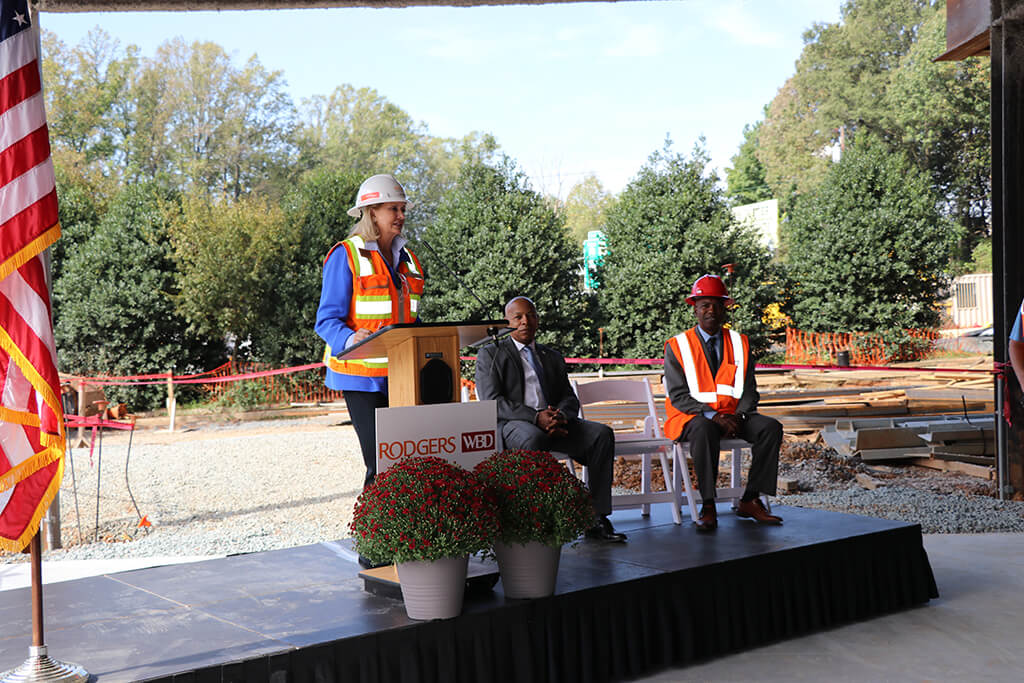 WSSU’s Chancellor Elwood L. Robinson, Walter B Davis CEO Walter Davis, and Rodgers President and CEO Pat Rodgers, all attended the ceremony, thanking the craftworkers for their hard work and dedication to safety on the project.