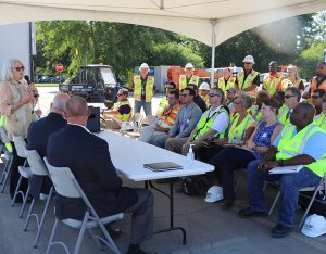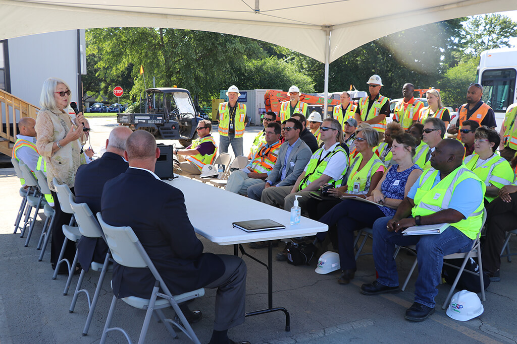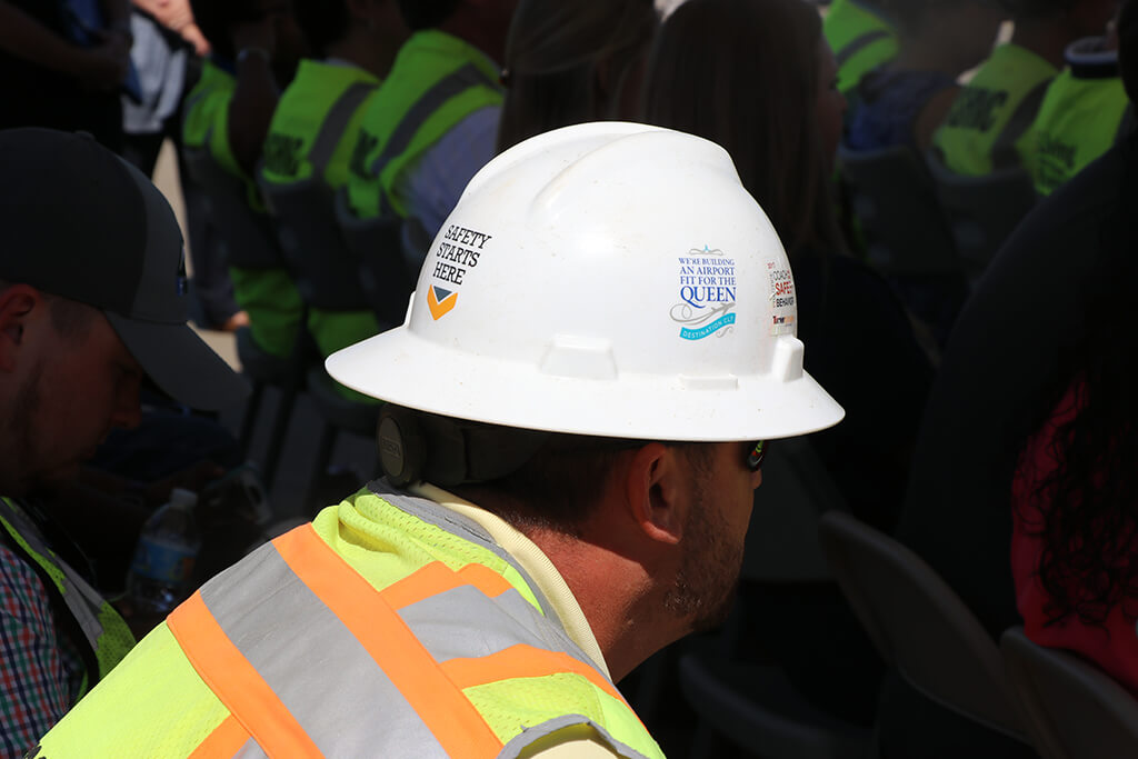The signing ceremony included officials from Rodgers, Turner, Flatiron and Blythe, all contractors working on construction at the airport, as well as inspectors and representatives from the Occupational Safety and Health Division of the NC DOL. Commissioner of Labor Cherie Berry addressed the crowd, stressing the importance of the commitment from all project partners to provide a safe workplace.