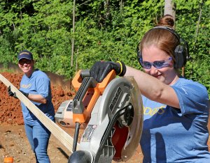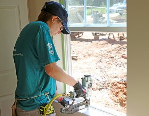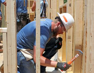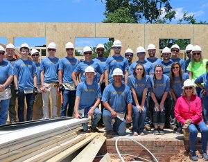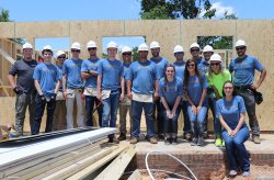 One crew worked to construct and raise walls for a new house, while another crew worked cutting and installing interior trim on another newly constructed house. One intern commented, “It was a great experience to watch Rodgers’ volunteers and Habitat supervisors interact with each other when going about tasks. Everyone settled into a role and it all came together.”