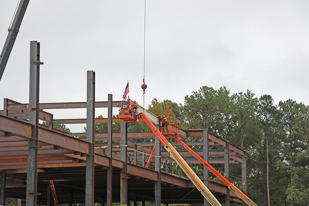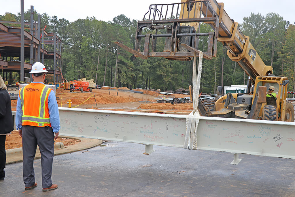Rodgers joined Wake County Public School System to celebrate reaching a significant milestone on the new Vandora Springs Elementary School in Garner, NC. Guests watched as the last piece of steel structure was raised, bearing an American flag to symbolize safe attainment of the highest point. Guests included students, teachers, parents, school officials, as well as Rodgers’ project team and craftworkers. When complete, the three-story, 110, 058 SF elementary school will provide a 52-classroom building to serve a core population of 660 students.