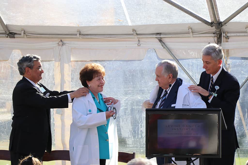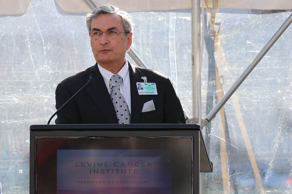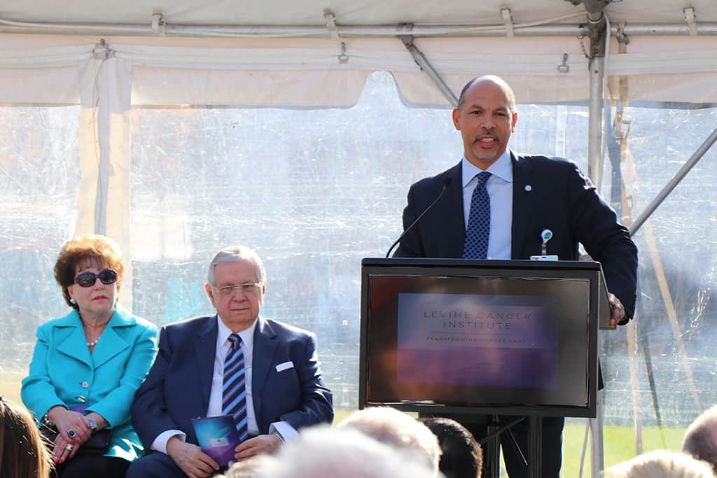The ceremony was punctuated by stories told by cancer survivors, sharing the personal impact of the local and world-class cancer care provided by LCI. “Hardly a day goes by that I don’t hear from a grateful survivor how LCI has changed their life for the better,” said Leon Levine. “Our focus is on patients, families and caregivers,” said Dr. Derek Raghavan, president of the Levine Cancer Institute. The new facility will more than double the size of the current cancer center and will enhance research and innovative treatment programs, palliative care, rehabilitation, and survivorship support. The project also includes renovations to 21,000 square feet within the existing facility.