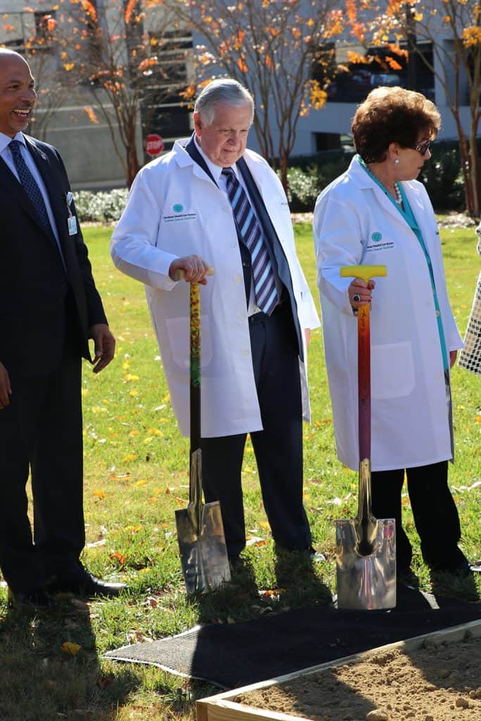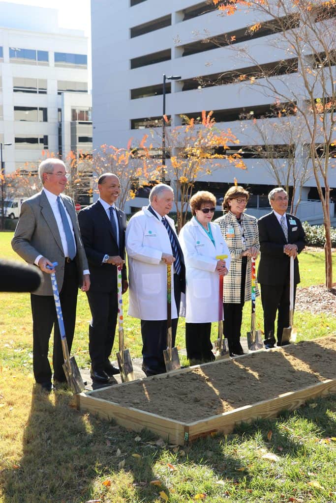 Four years after completing the Levine Cancer Institute (LCI) at Carolinas Medical Center in Charlotte, Rodgers joined officials with Carolinas HealthCare System, the Leon Levine Foundation, and the Levine family to break ground on a second building expanding the innovative cancer center program. The new seven-story, 260,000-square-foot building will be adjacent to the existing building and will connect via an above-ground walkway. The building is funded in part by a generous gift of $25 million from the Leon Levine Foundation.