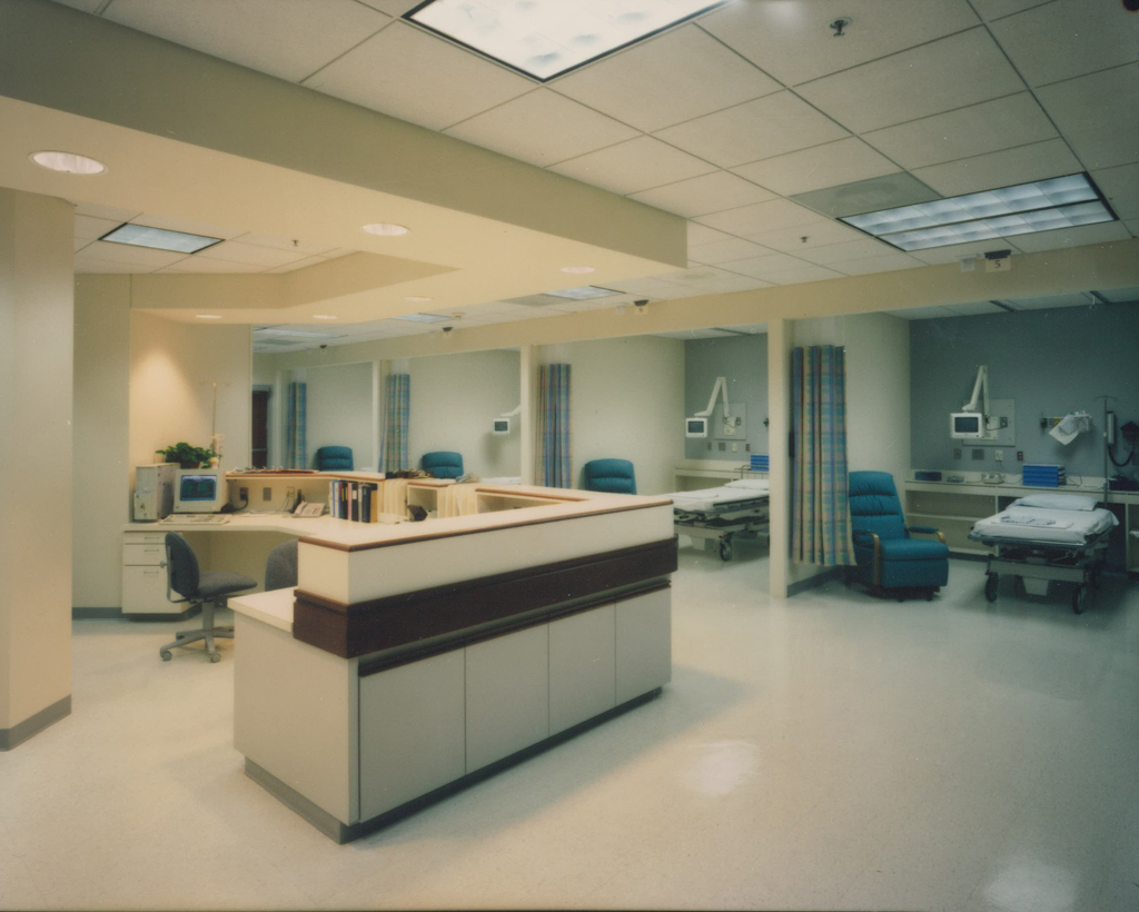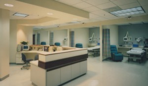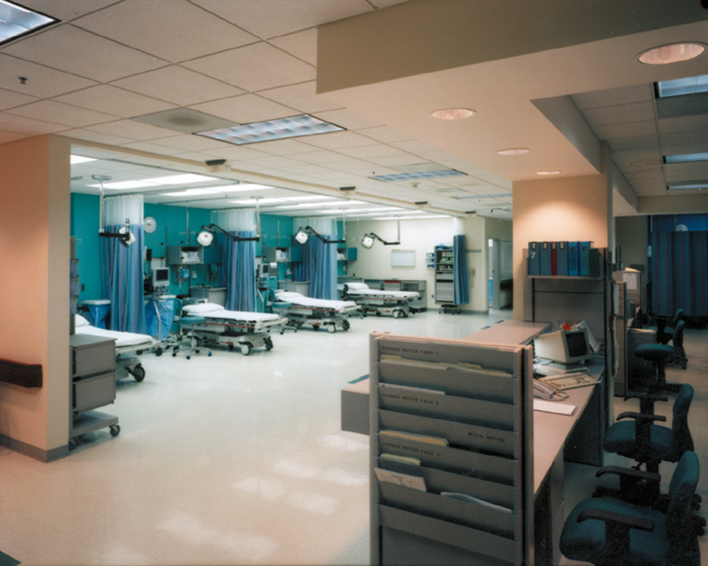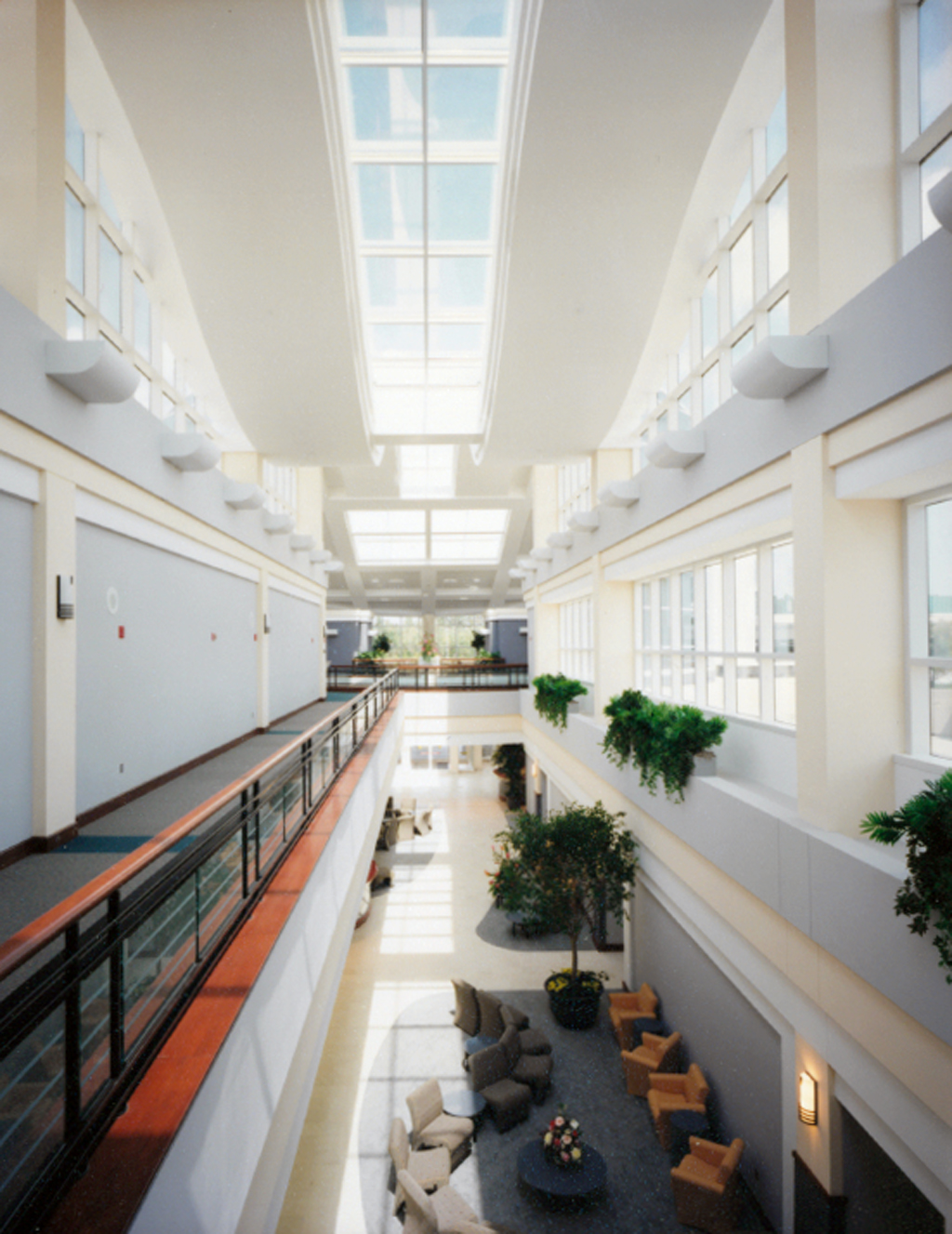 The building was designed as a “medical mall,” with medical offices at one end of the main complex joined to patient towers at the opposite end by multi-level glass pedestrian bridge connectors