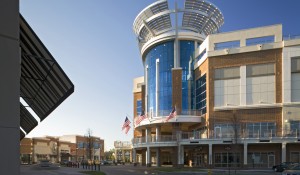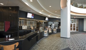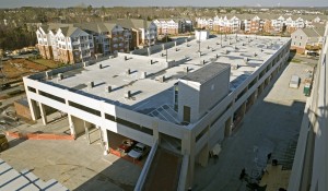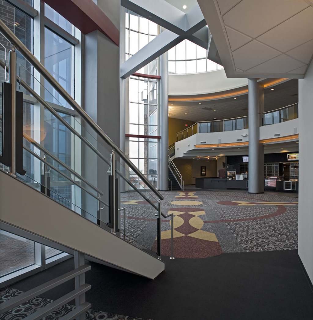 Building F has a four-level, steel frame structure with a movie theatre, retail shops and restaurants, plus one level of underground parking in the adjoining deck