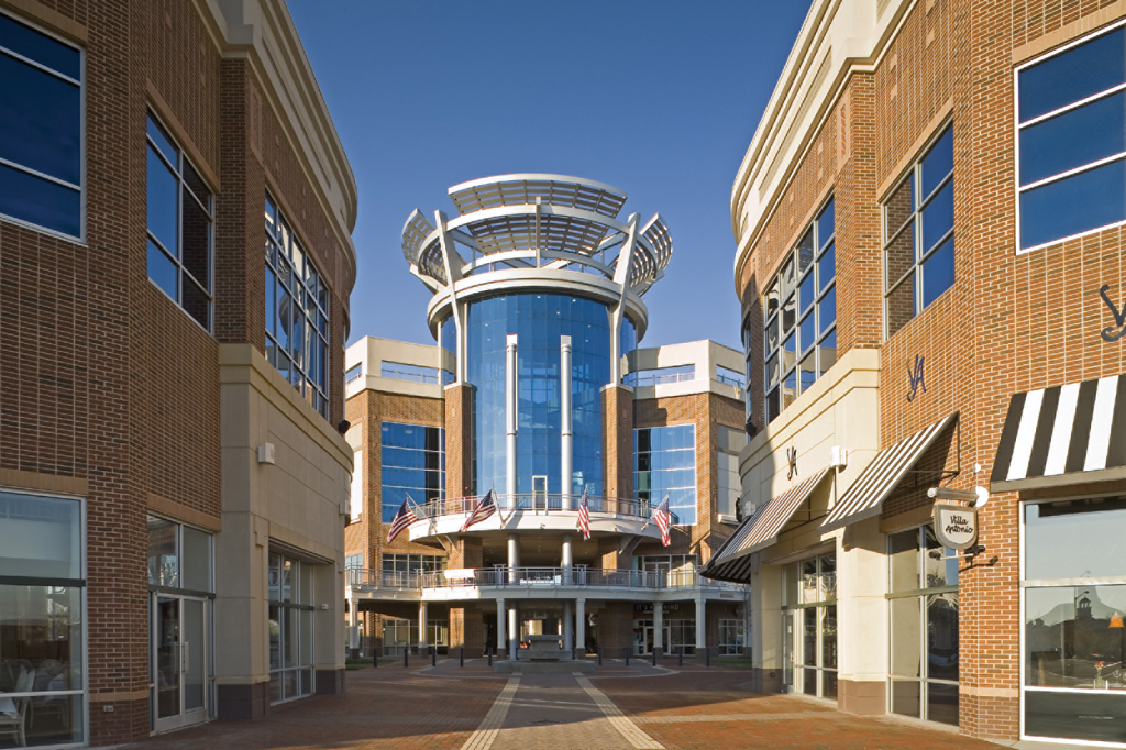 Building A consists of a two-level, steel-frame structure with retail shops and restaurants on Level 1, along with a YMCA facility. Level 2 has office space