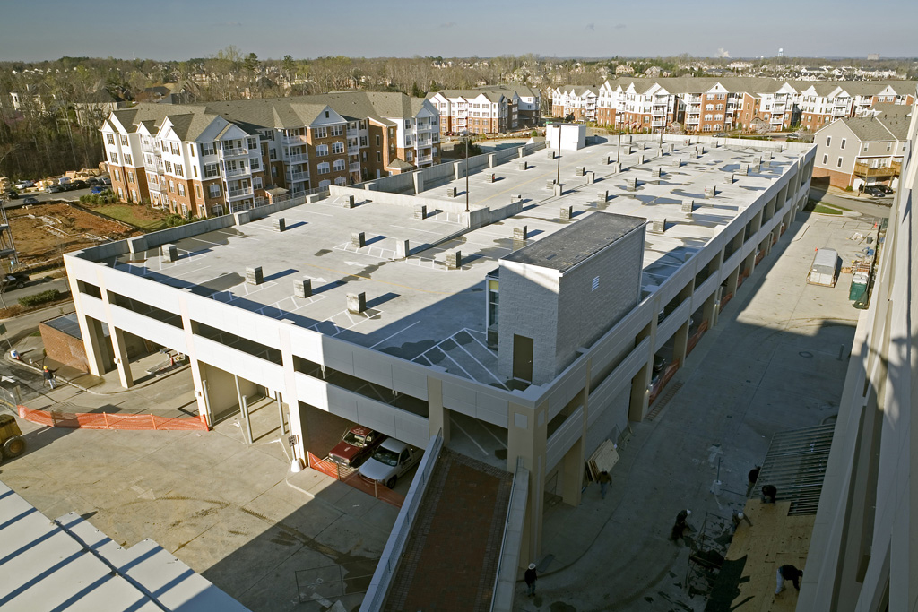 Four-level cast-in-place concrete parking structure has space for 459 cars
