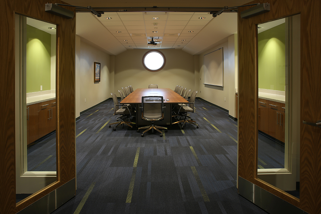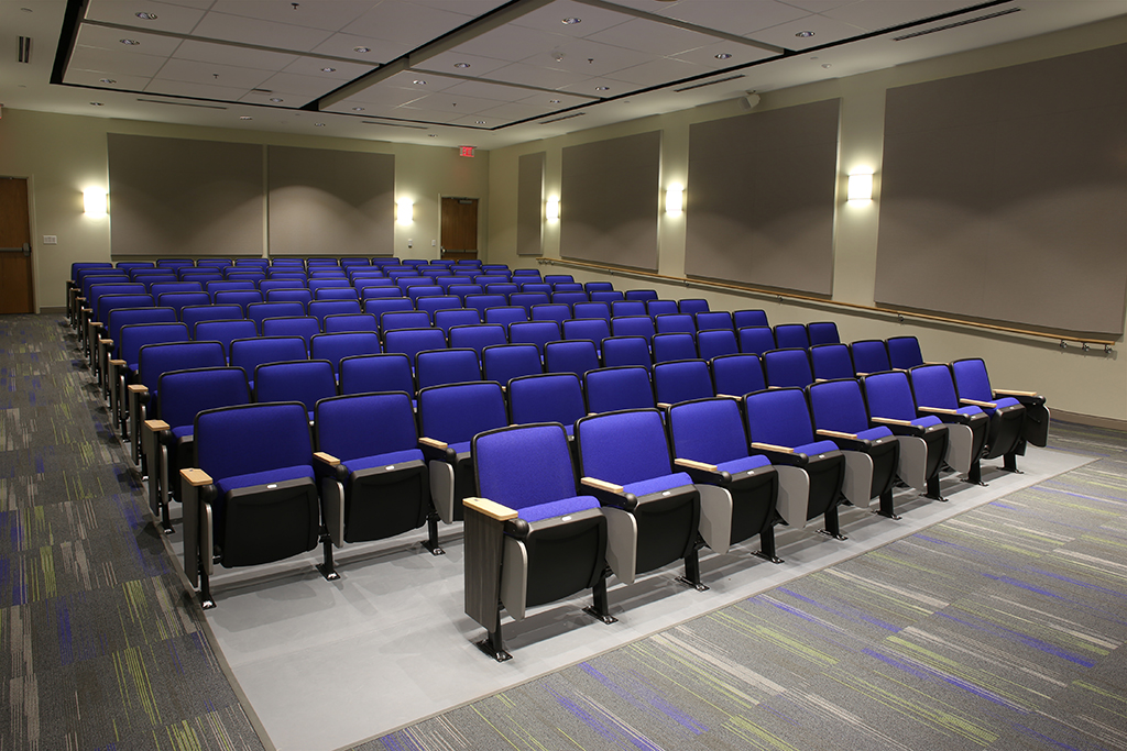 Features include a library, 36 classrooms, five seminar rooms, a 130-seat auditorium, a horticulture design lab, multipurpose and student lounge space, computer labs, offices and conference rooms