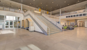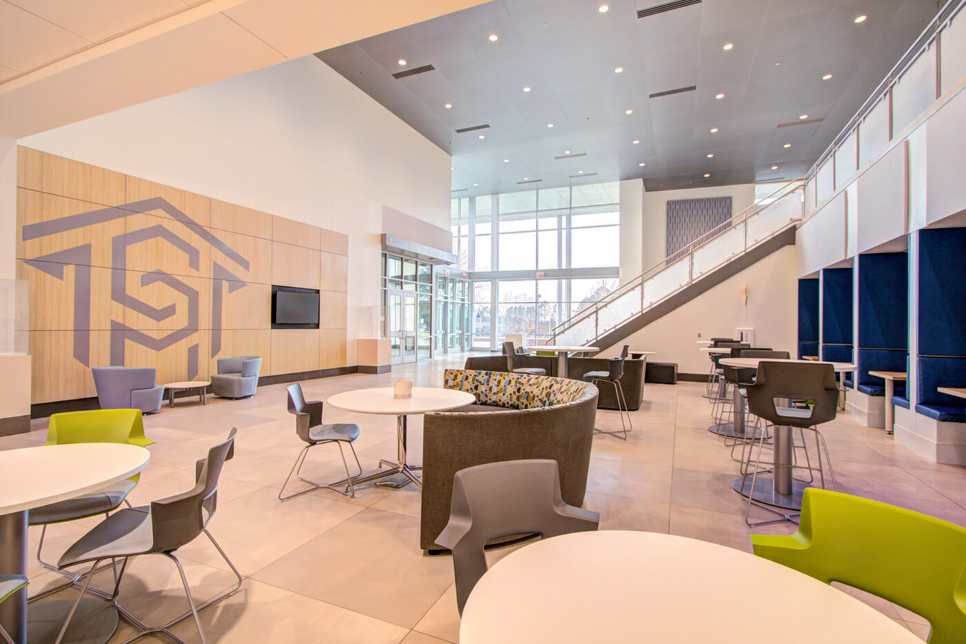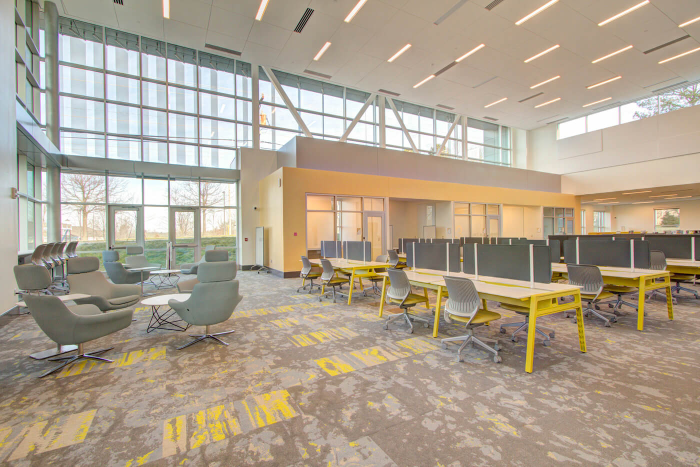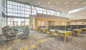 The new Merancas IV Classroom Building on the CPCC Merancas Campus in Huntersville, NC is a three-story, 67,660-square-foot facility that is home to the campus library, including a computer classroom and student technology center. Students can enjoy a large student commons area, as well as separate study and lounge areas.