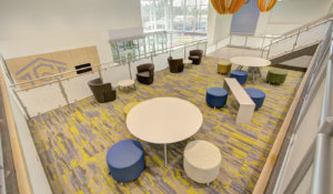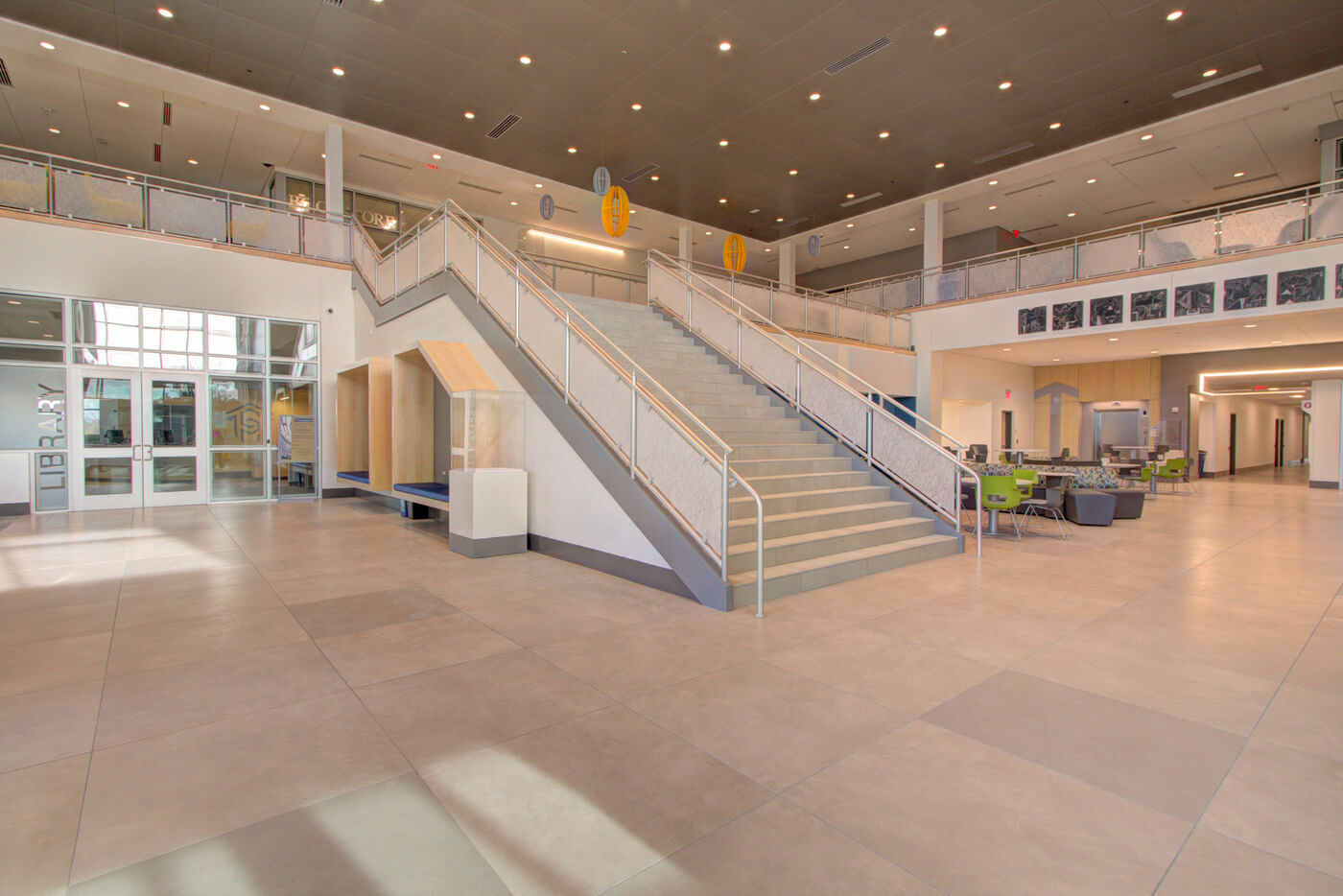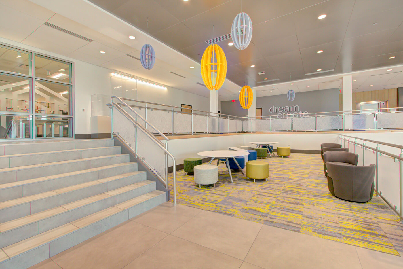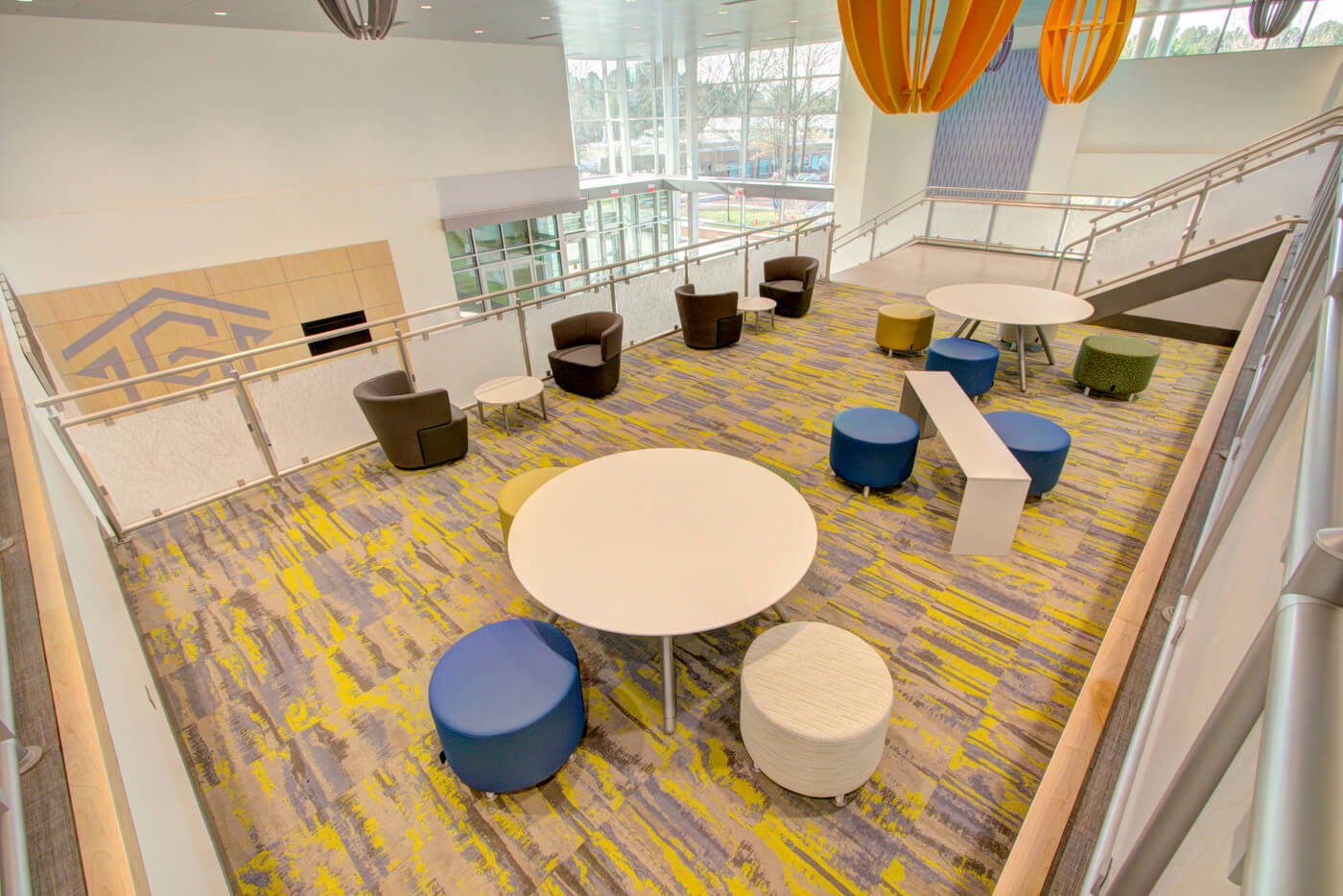 Classrooms and offices for a Middle College were also integrated into the space, providing a unique opportunity for Charlotte-Mecklenburg School students. The Middle College allows students to enroll and earn college credits while simultaneously completing their high school classes.