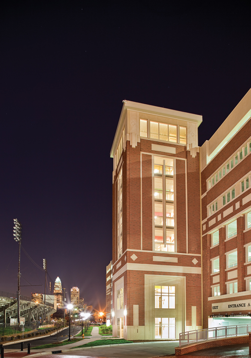 Constructed a new, pre-case concrete student parking deck with eight levels, two elevators, and 1,002 parking spaces on a mat foundation