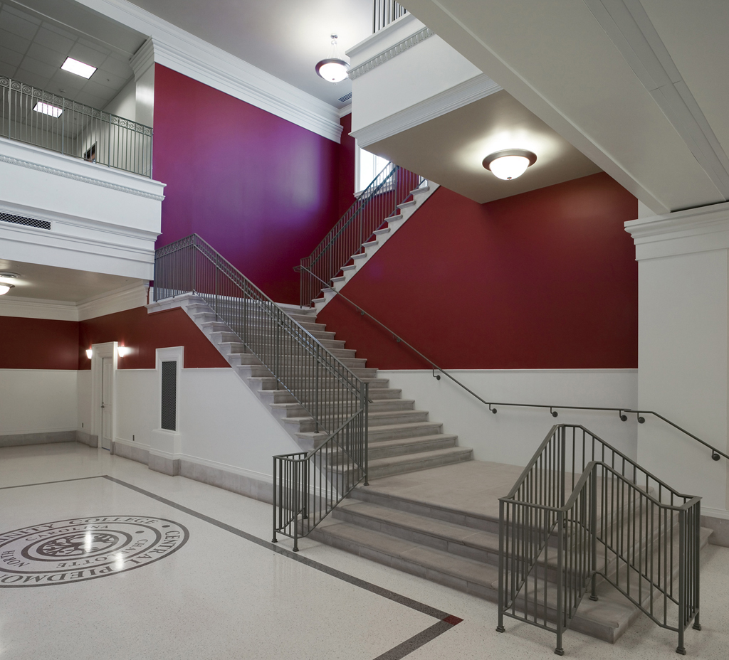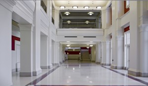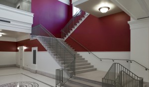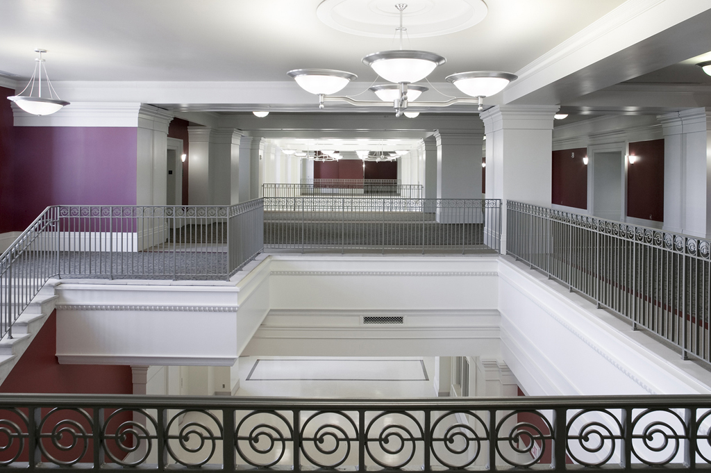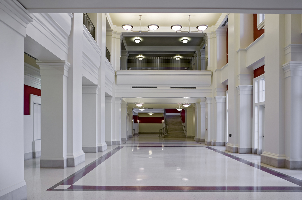 Known as the campus’s grandest building, designed in the Neo-Georgian/Classical style of architecture with striking Ionic Style limestone columns that rise 37 feet and weigh about 25 tons each
