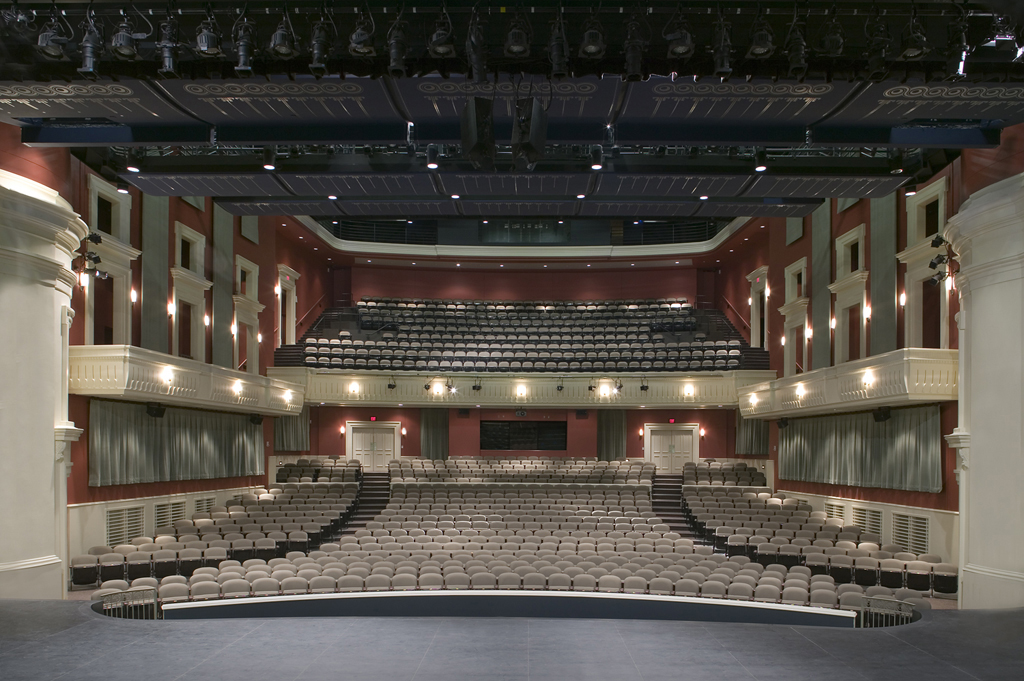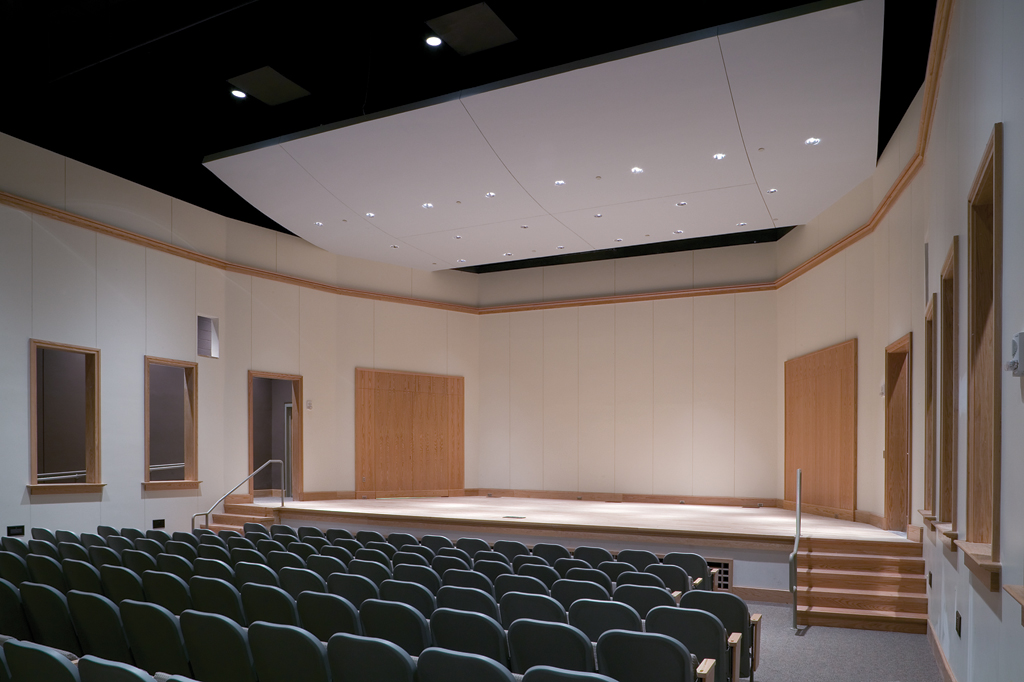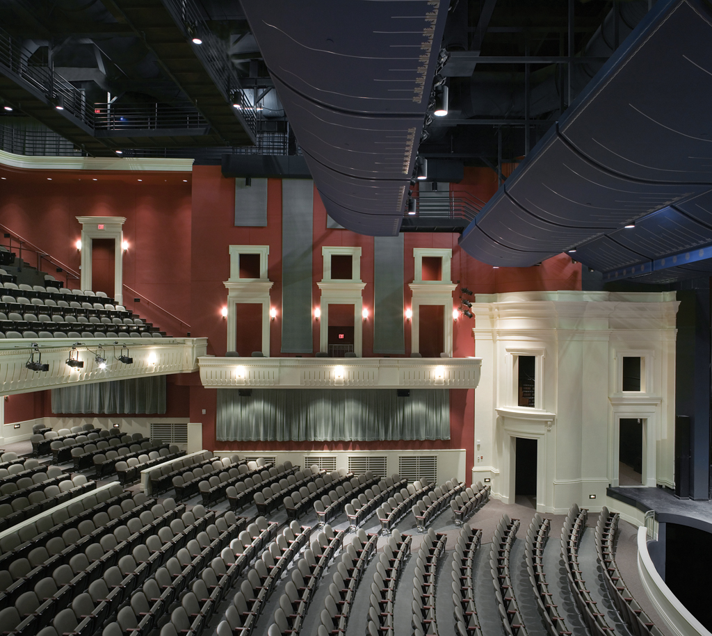 1100-seat performing arts center and a 150-seat recital hall, full stage theater, concession stand and box office area. The recital hall, a smaller venue, will also be used for musical events and lectures