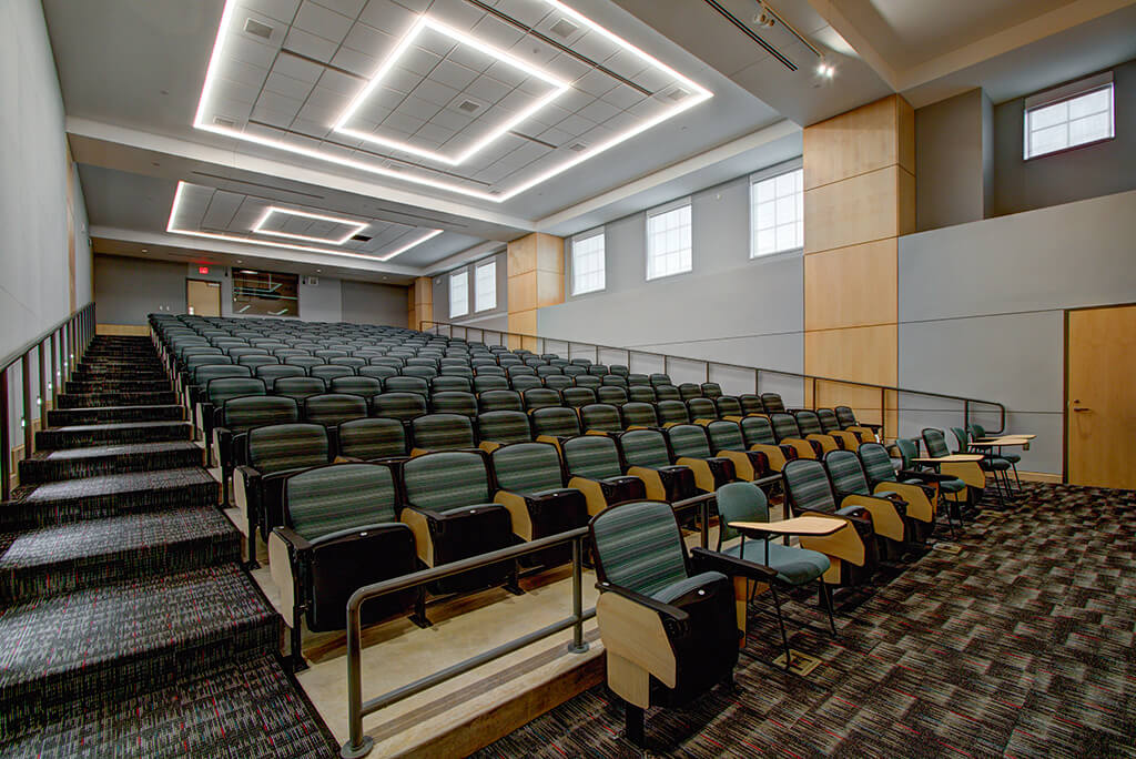 Additional scope includes four biology and two chemistry labs; 29 computer classrooms; a 200-seat auditorium; and faculty and staff offices