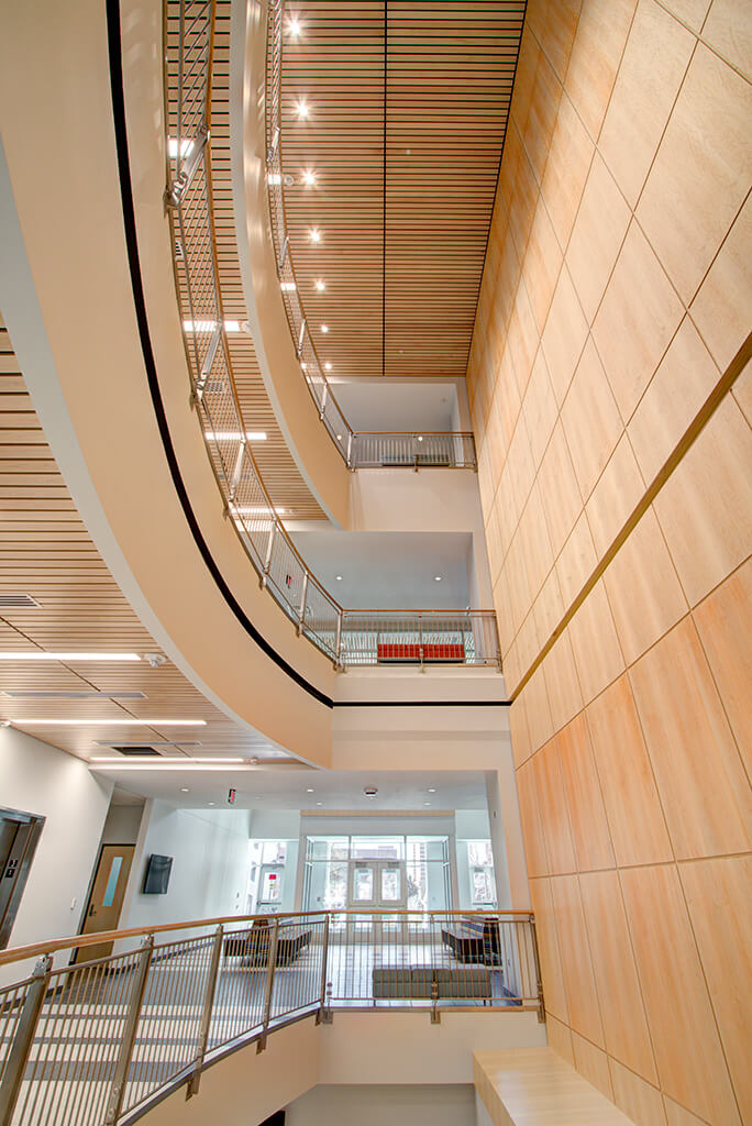 The new education center was constructed on the site of the pre-existing Kratt building on CPCC’s Central Campus. The six-story building contains 23 classrooms and multiple programs including Basic Skills, Literacy and Disability Services; College and Career Readiness; STEM programs such as biomedical equipment engineering technology; science laboratories; and additional general education instruction space