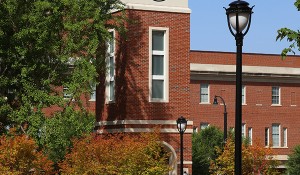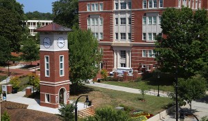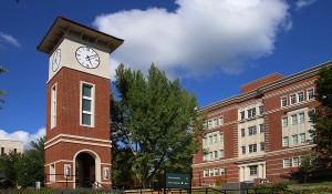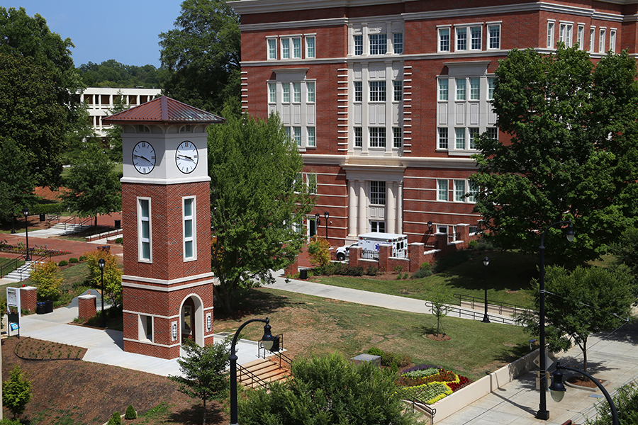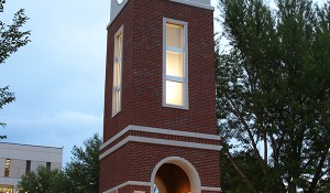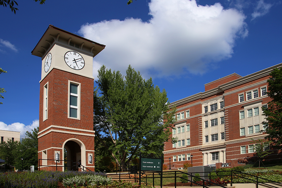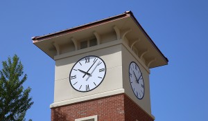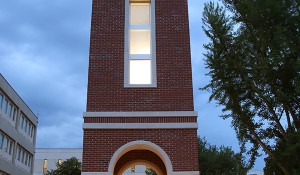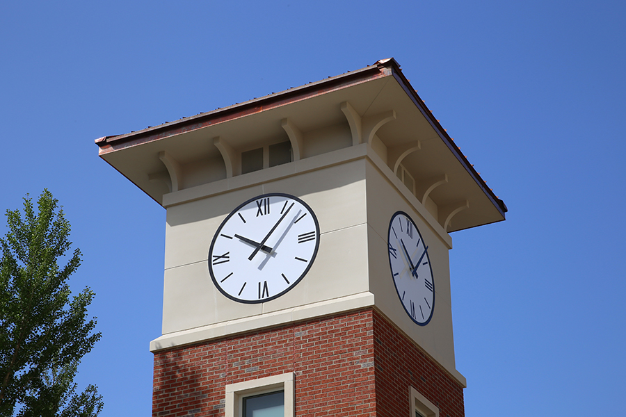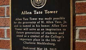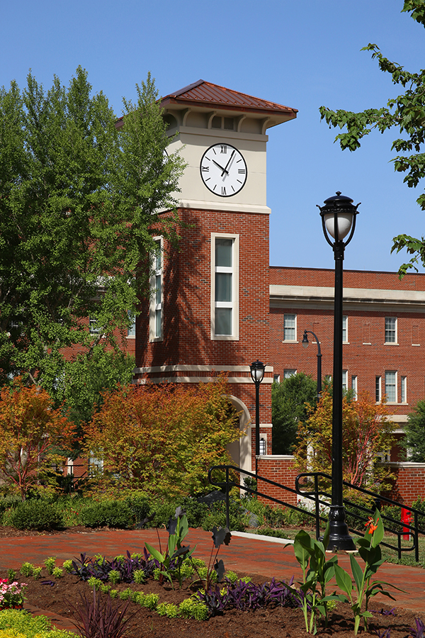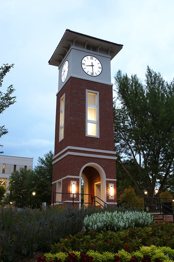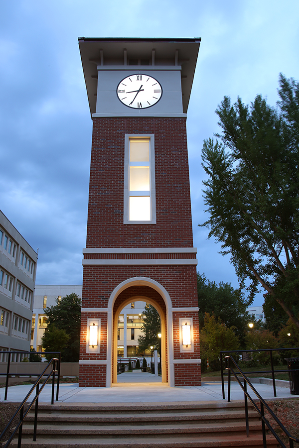The Allen Tate Tower, a 48-foot clock tower, serves as a focal point and signature landmark on the Central Campus of CPCC