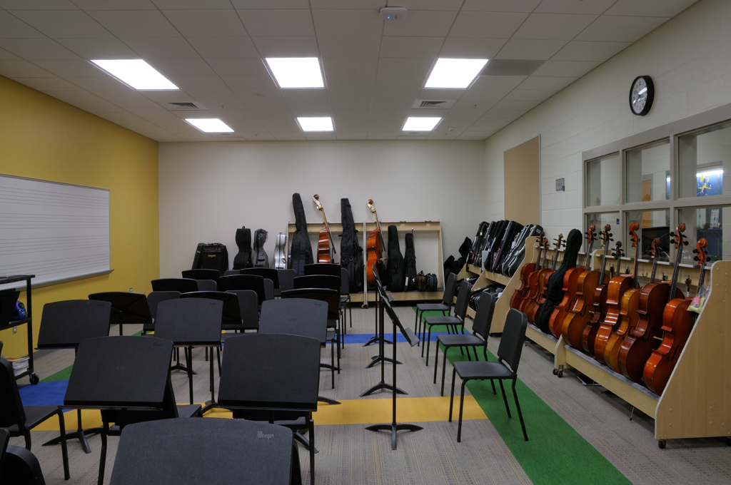Middle school functions include the Latin classroom, orchestra studio and three visual arts studios
