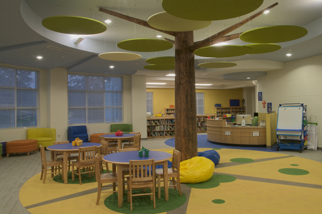 Inside, the building contains the lower school STEM lab, media center, technology lab and music classroom