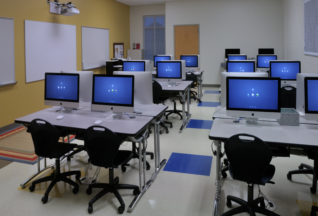 The upper school functions include a math and science lab classroom as well as as the academic services suite