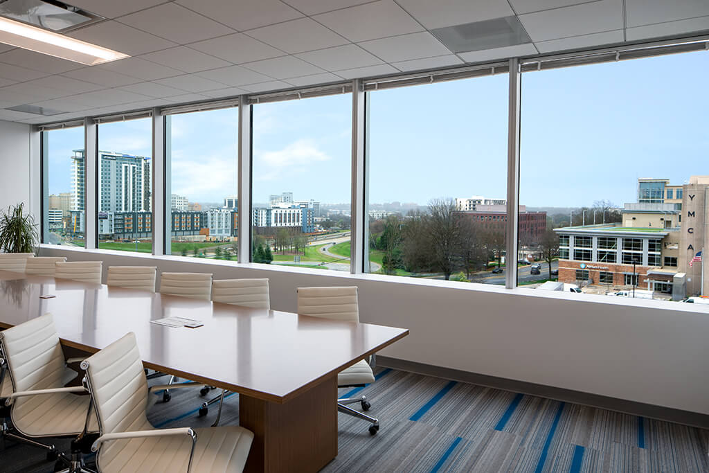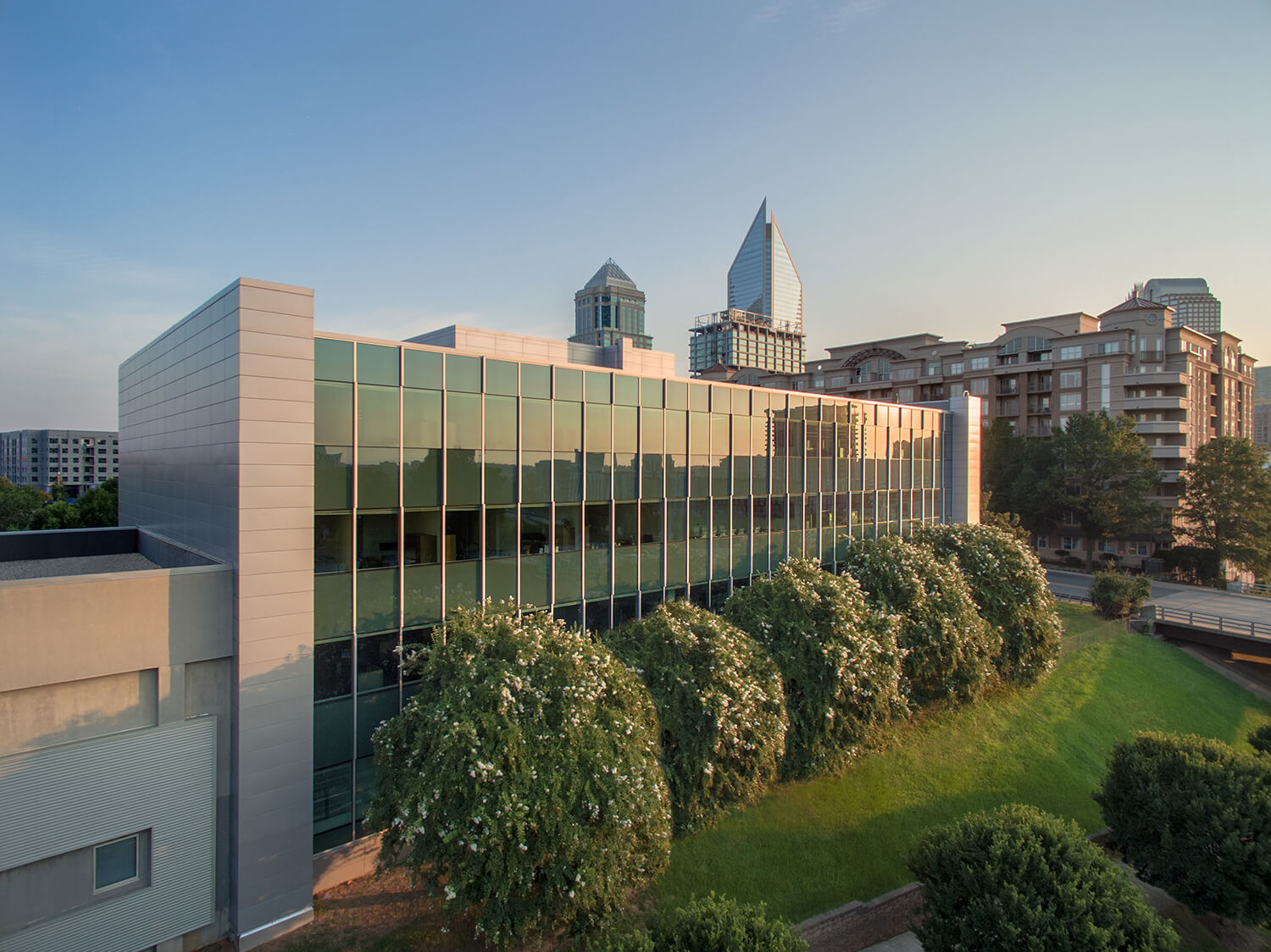 The temporary walls used during the reskin also kept all rain and wind out during two hurricanes that came through Charlotte while the building was under construction