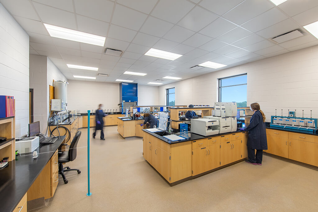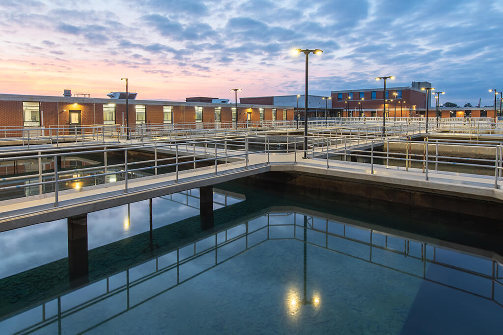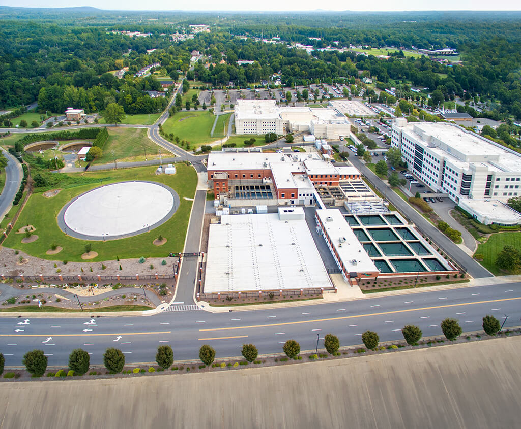 This project was a massive renovation to the existing water treatment plant along with the addition of a new Clearwell Tank, Administration Building and Membrane Building. The Membrane Building houses a water filter system which is the first of this type in North Carolina. Between the existing water plant and the new water processing membranes, the plant is able to produce 27 million gallons of water a day. Most work took place on structures originally built between the 1920s and 1953. Upgrades were made to mechanical systems, electrical feeds, and laboratory and office space to name a few.
