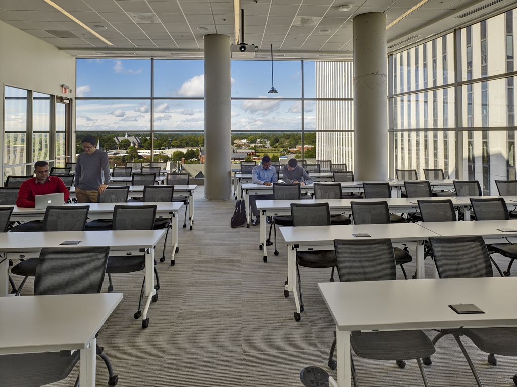 Provides faculty/staff offices, classrooms, meeting rooms, conference rooms, a flat-floor auditorium, collaboration space, lobby areas, restrooms and various support spaces