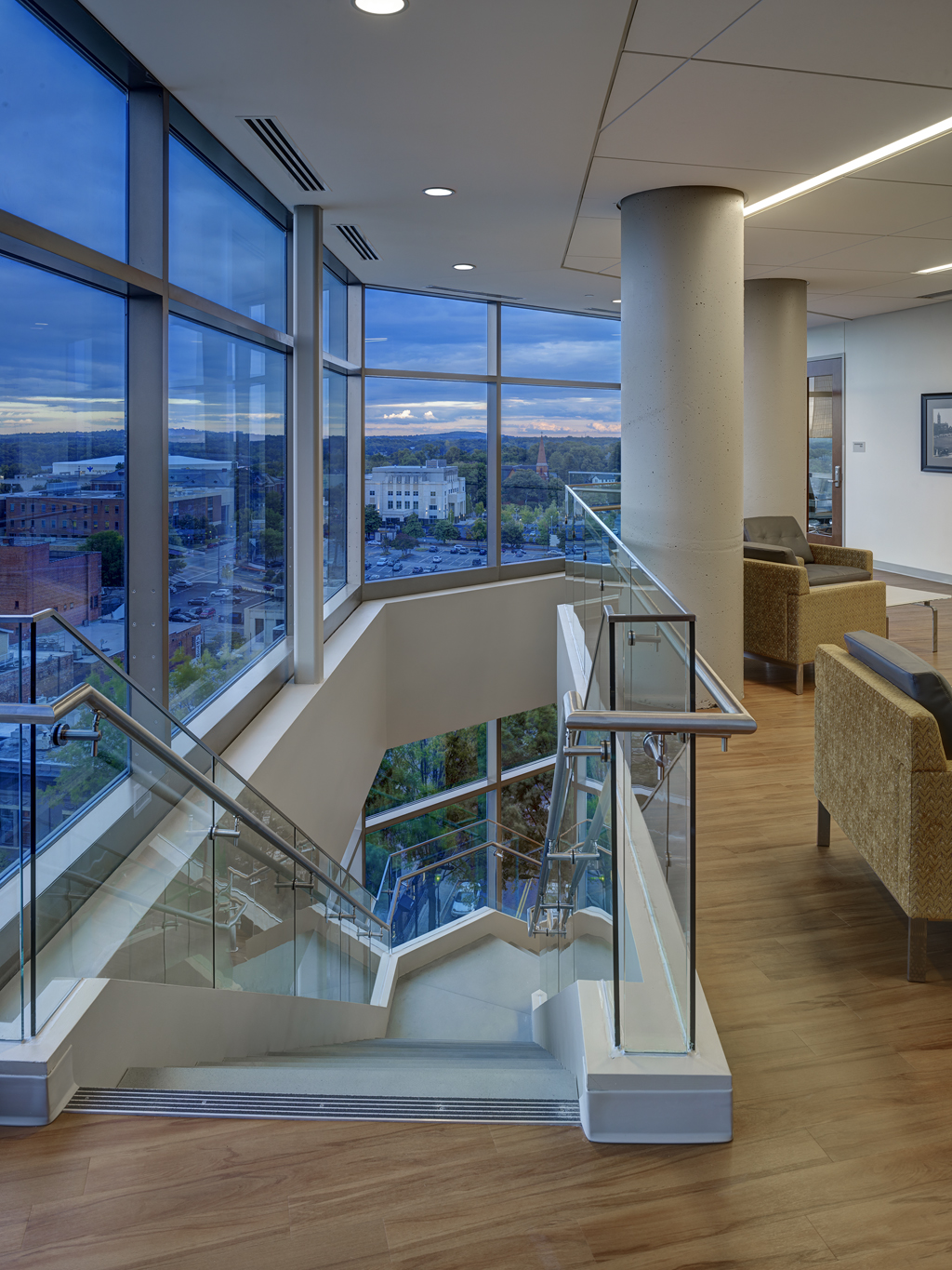 The Greenville One Building is a multi-use, multi-tenant facility on North Main Street and is part of a significant redevelopment of an entire city block in Center City Greenville