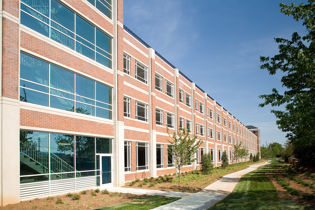 Four-level, 967-space parking deck made of precast concrete with a precast-panel exterior skin with brick inlay