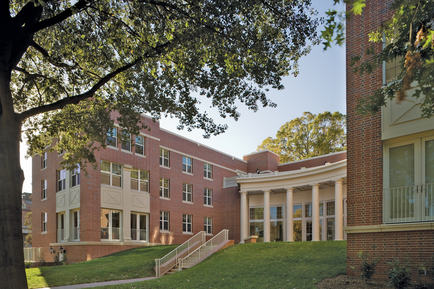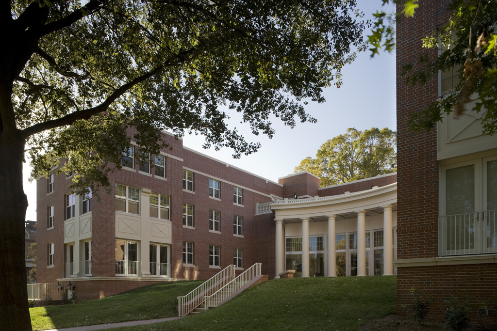 Four-story dormitory addition with a masonry veneer and hollow-core floor slabs. Comprehensive renovations were also made to the existing dormitory, which was originally built in 1939