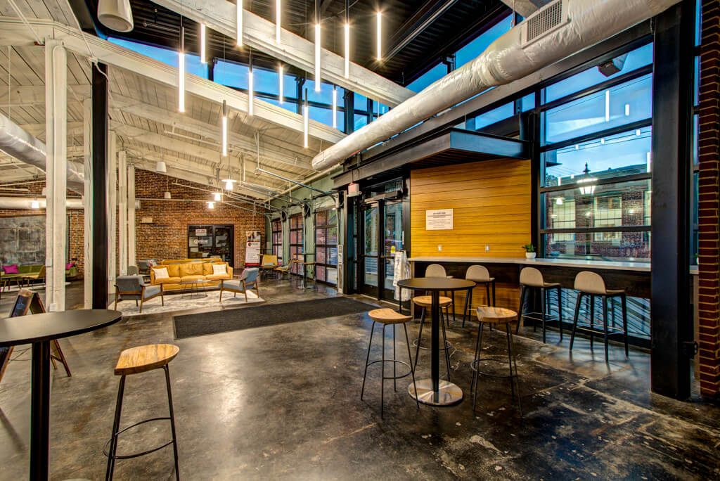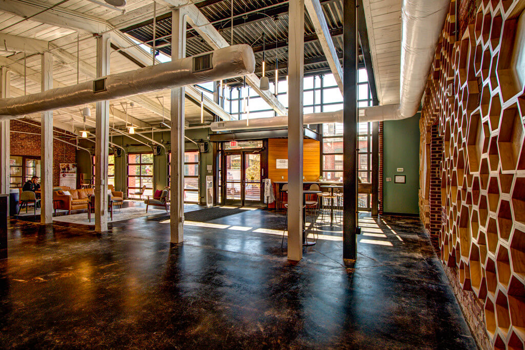 Rodgers’ portion of the upfit included finishing space for the future Social Commons and Coworking Space. Social Commons is a 2,000 square-foot space and is located inside the main entrance, providing space to meet and collaborate in a casual setting. The Coworking space is a 7,500 square-foot area dedicated for startups, entrepreneurs, Davidson College students, faculty and alumni to meet and work