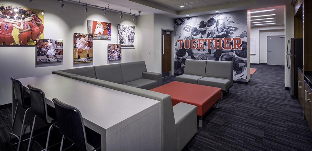 Team facilities and locker rooms, coaches’ offices and two varsity practice gyms for men’s basketball and women’s basketball and volleyball