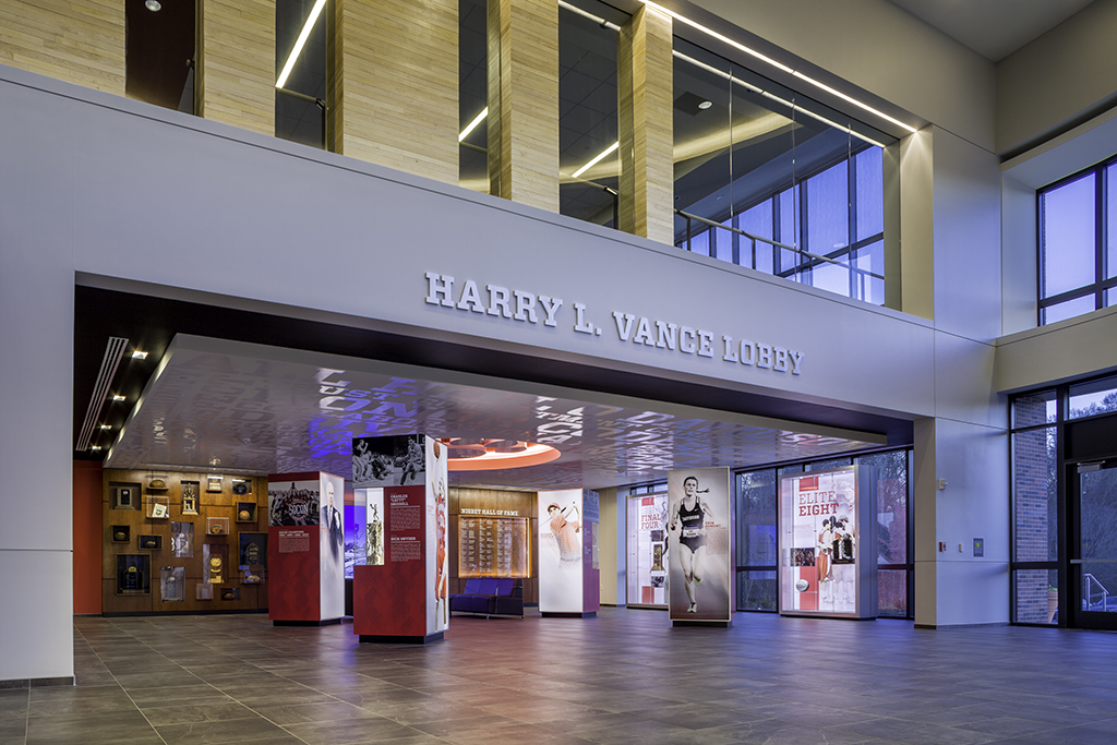Two-story addition to the Baker Sports Complex, originally constructed by Rodgers. The Vance Athletic Center serves as the new main entrance to the complex and arena