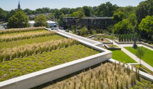 – Vegetative roof planted with drought-tolerant plants that absorbs heat, allowing the roof membrane to last longer, and holds water, reducing storm water fees