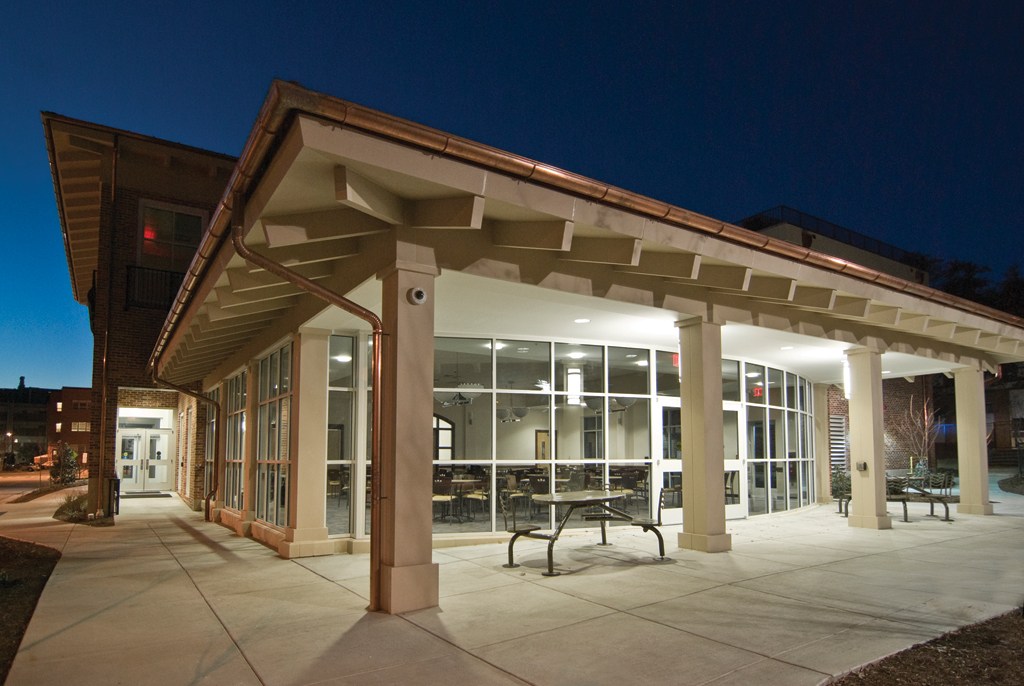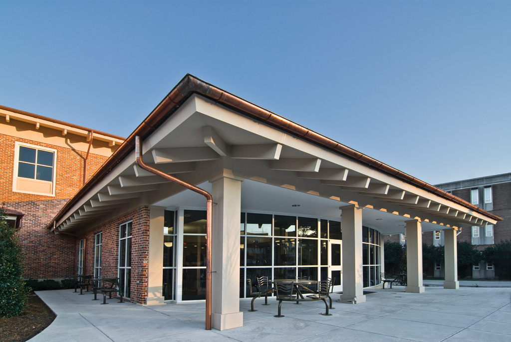 The first LEED® Silver certified building on the campus of East Carolina University with LED lighting, water cisterns in the courtyard, eco-friendly landscaping, and recycled bricks that were reclaimed from a local warehouse