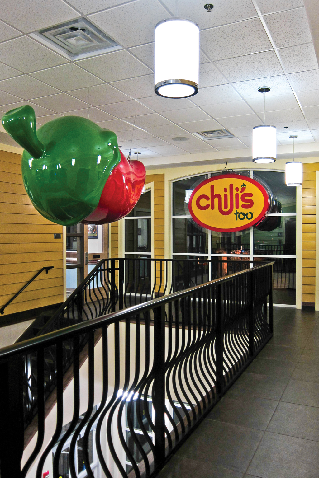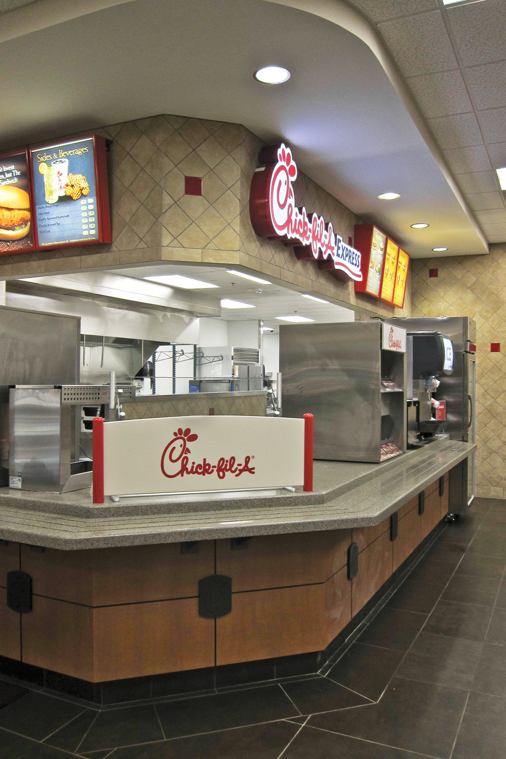 Two branded dining areas, serviced by Chick-fil-A Express and Chili’s Too, plus public and private dining areas