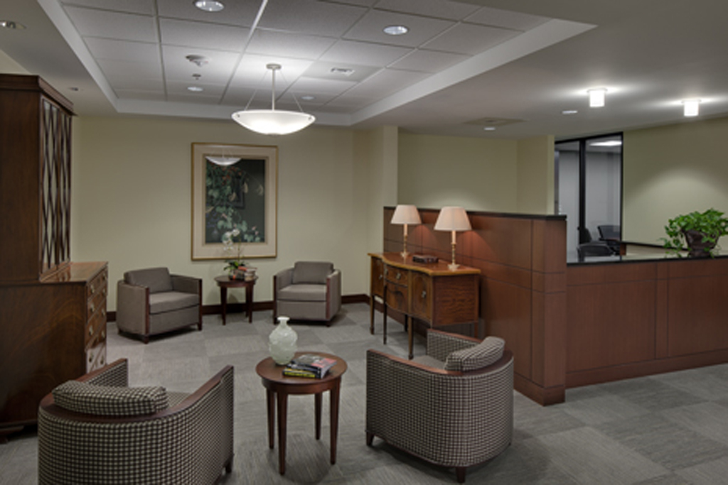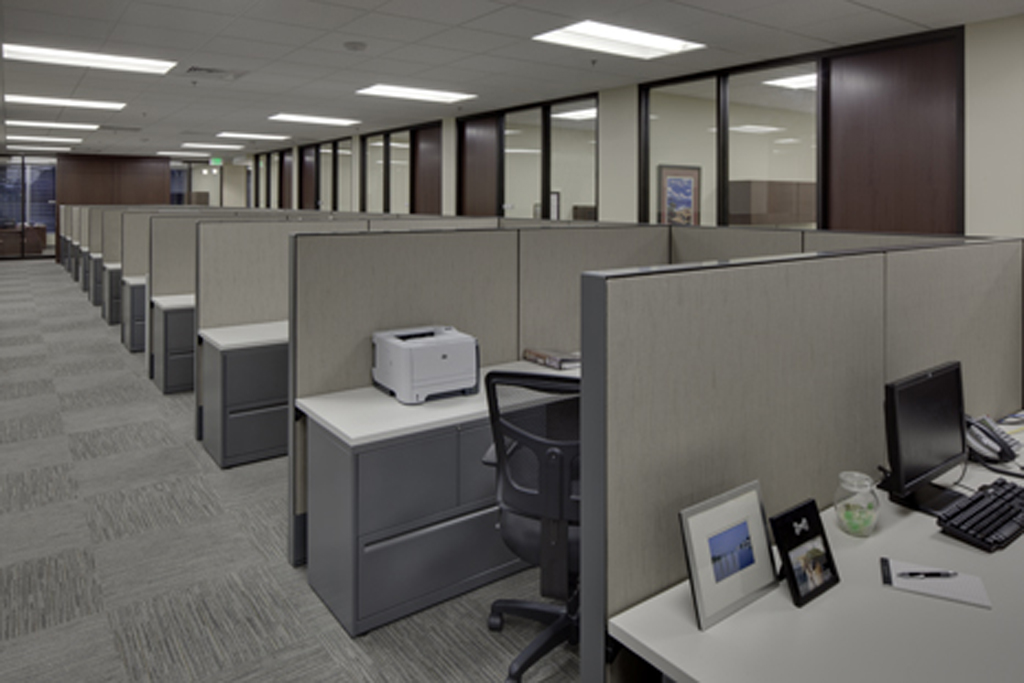 A mix of open and hard-wall offices, conferencing space, administrative support areas, and staff break/lounge areas
