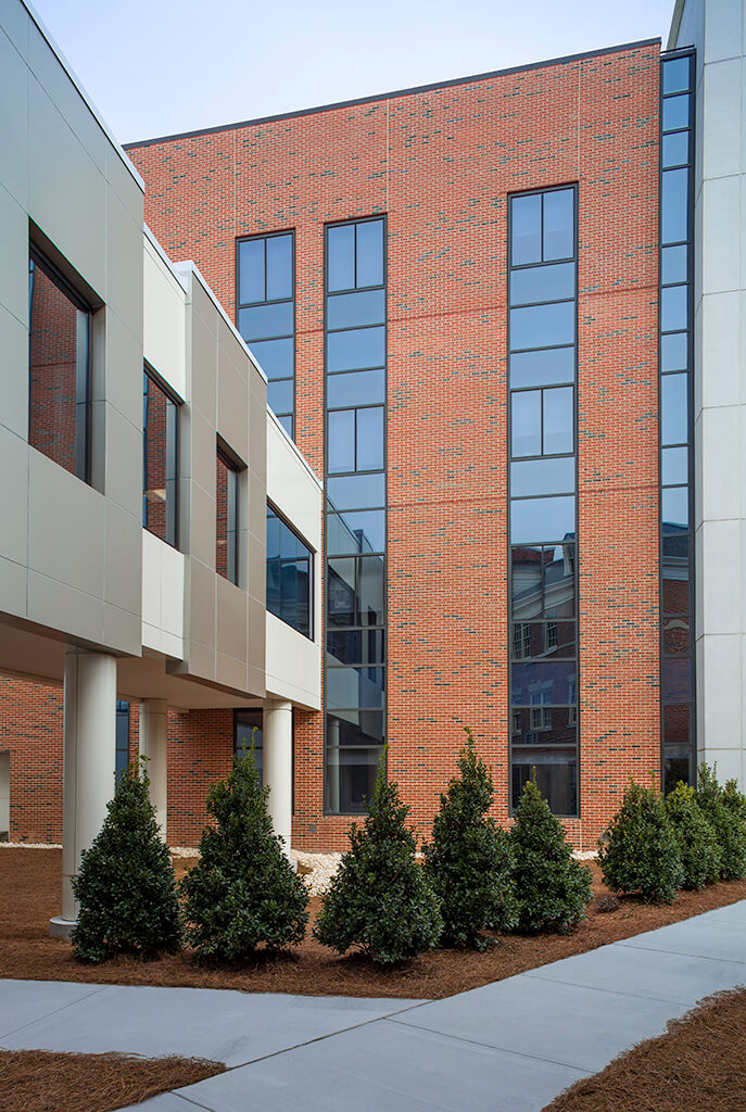 A bridge connector was constructed to tie the acute care center into the second floor of the existing adjacent building