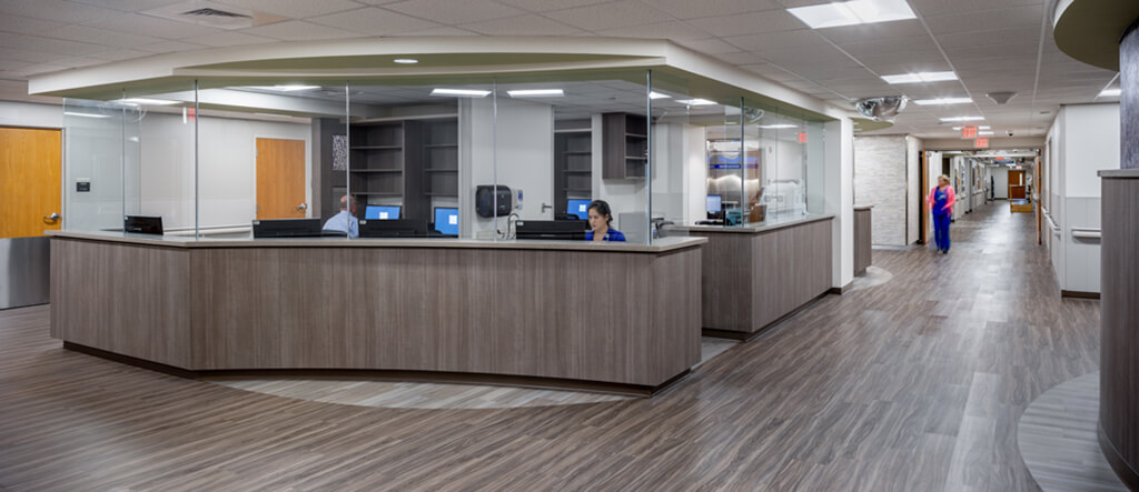 Completed in four overlapping phases on two different floors in the center of the hospital’s main buildings, the project included a complete renovation of three major patient care areas, all with distinct technical requirements