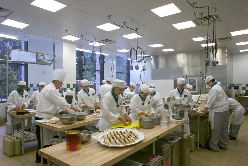 Significant interior space includes 18 instructional kitchens and food labs fitted with the latest technology in culinary arts