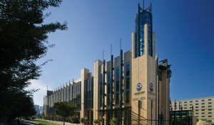 Construction of a five-story facility with a superstructure of structural steel that serves as the campus centerpiece