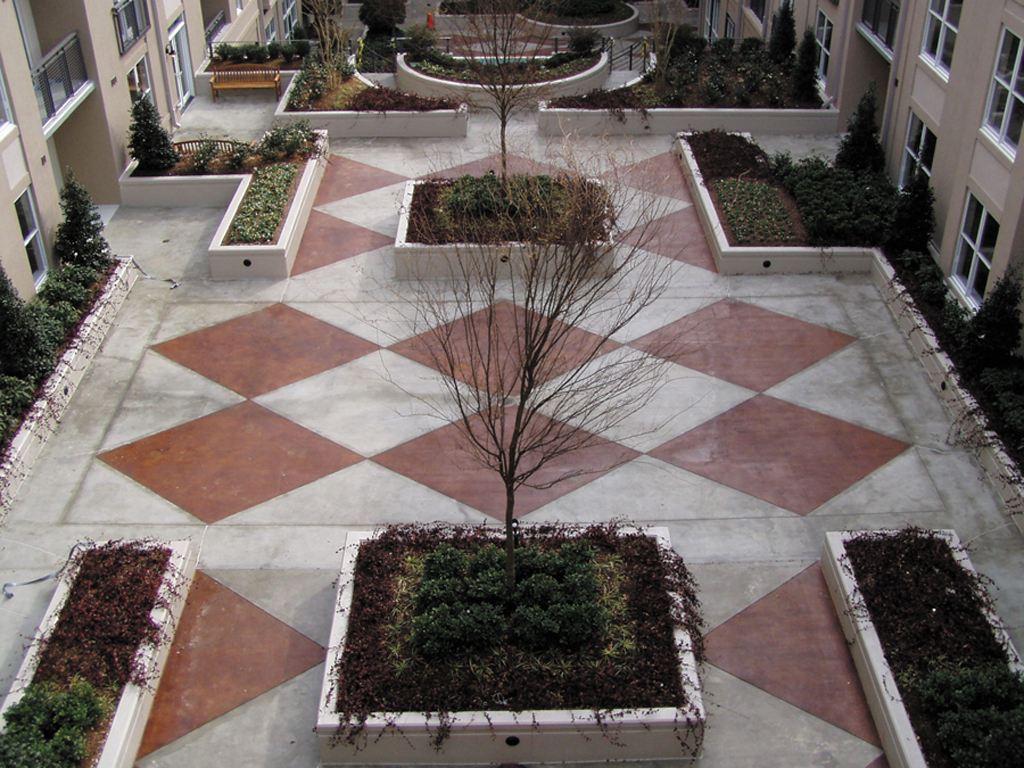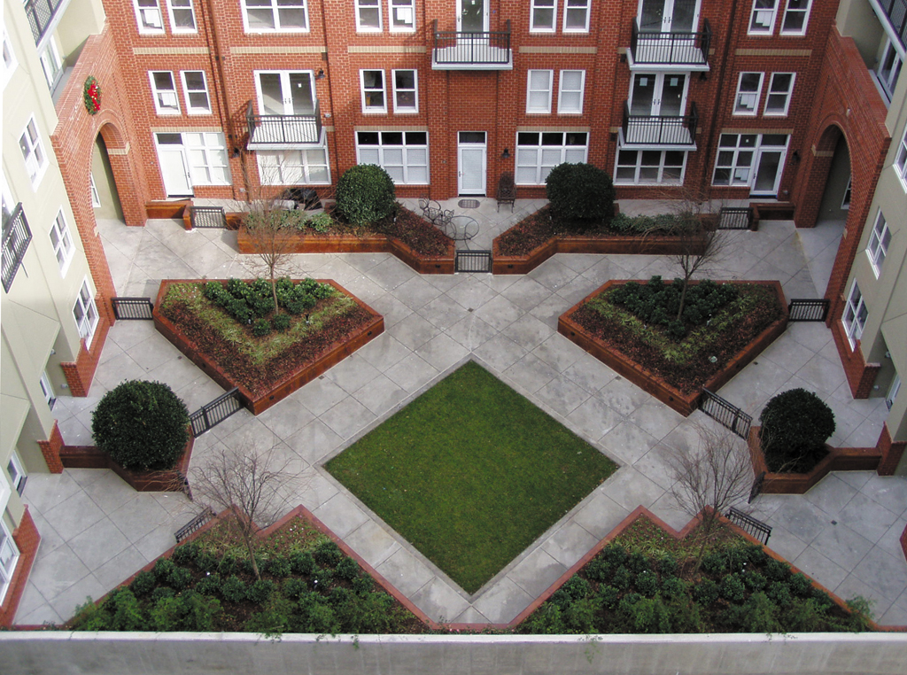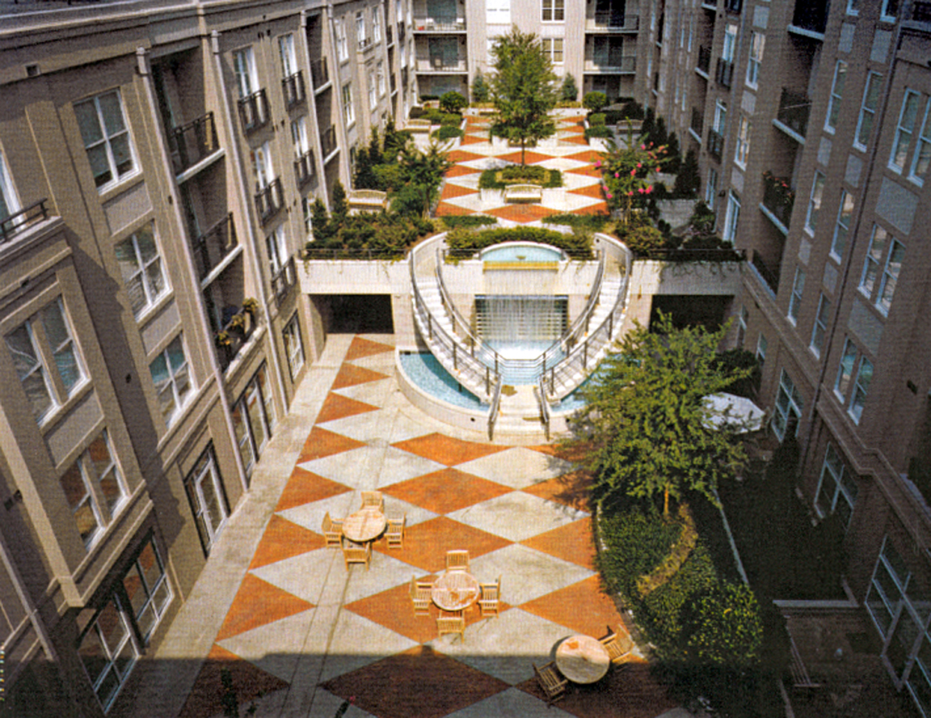 A 102-unit condominium complex with 88 terraces and townhomes on four floors, with penthouses on the fifth floor